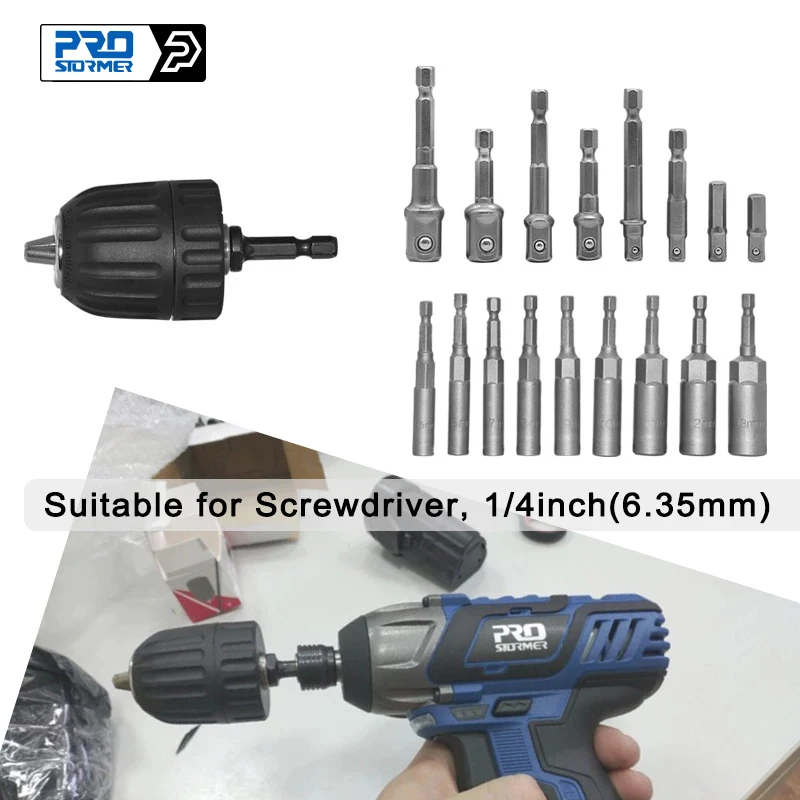 Патрон для дрели PROSTORMER переходник для отвертки, с шестигранным хвостовиком 14 дюйма на 38 дюйма
