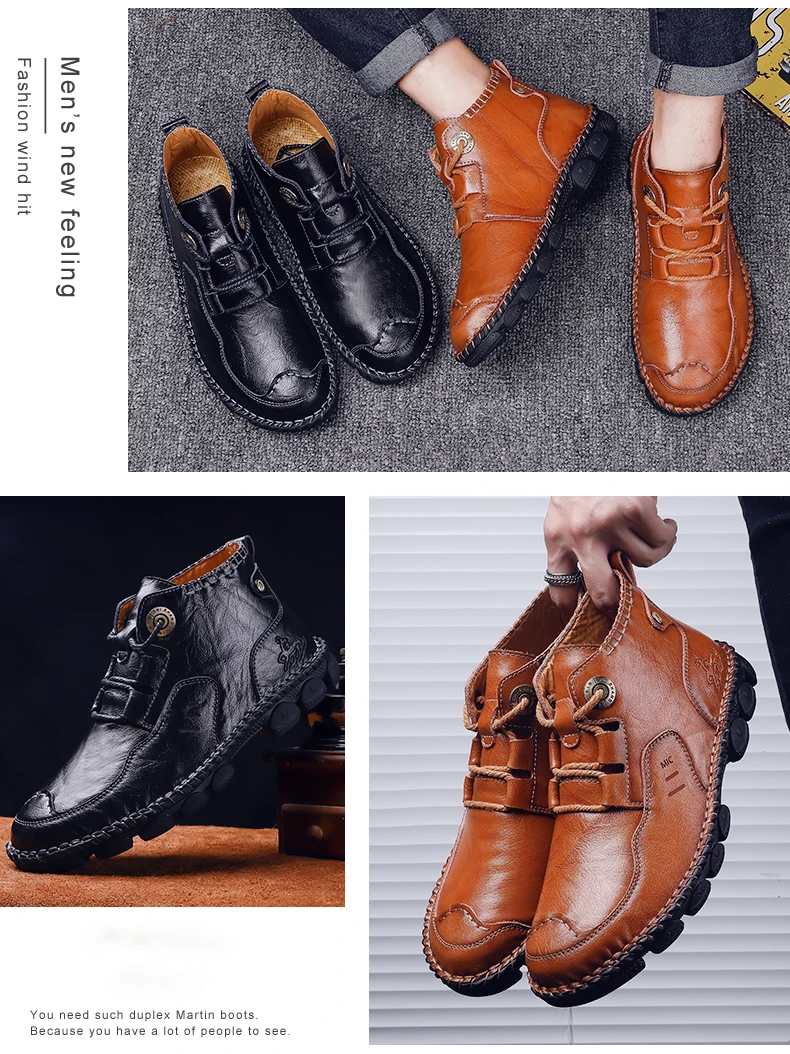 Высококачественные Новые мужские кожаные ботинки, зимние высокие мужские ботильоны, мягкая удобная обувь, легкие Кеды Martin, большой размер 48