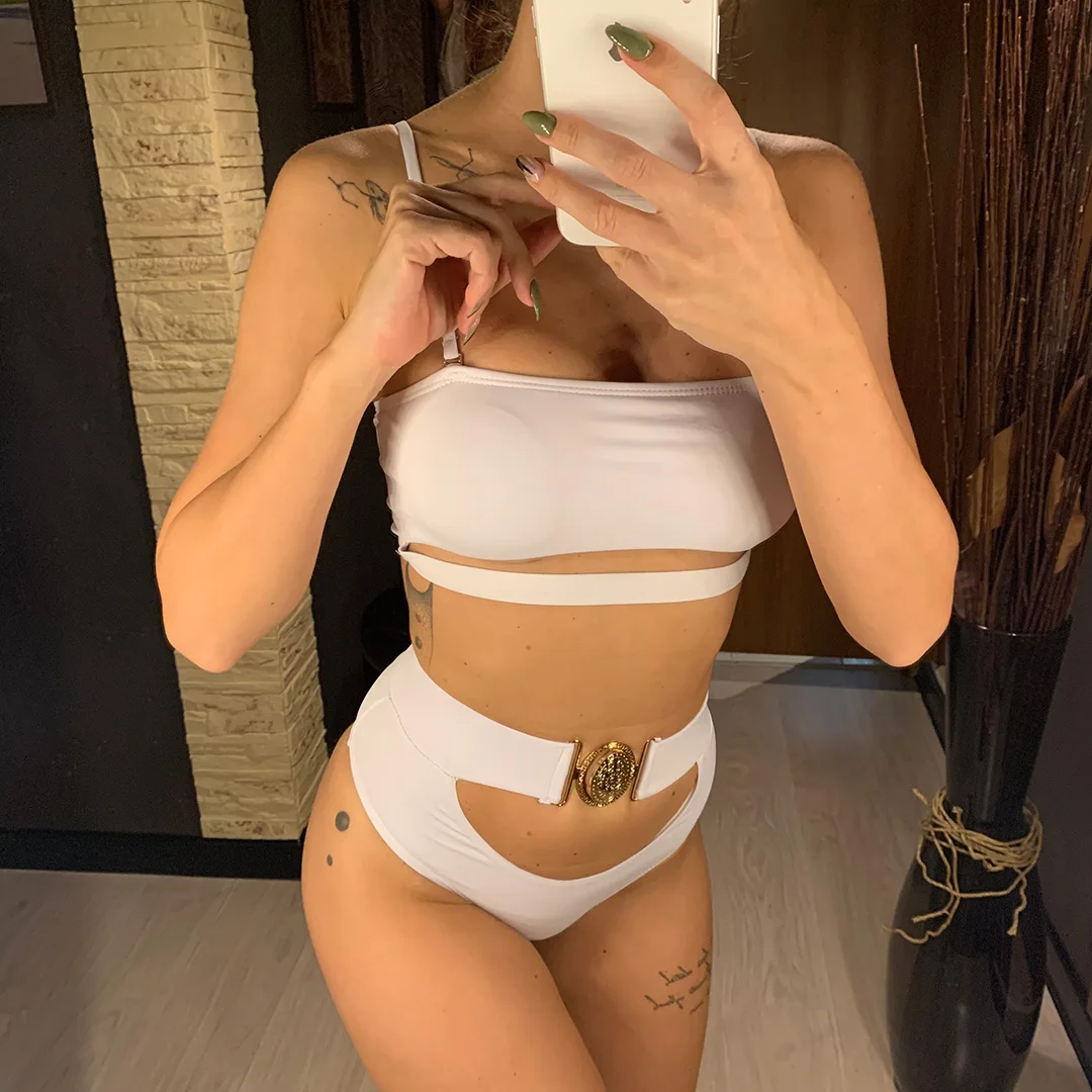 Женский купальник-бикини, Раздельный купальник без бретелек, с высо...