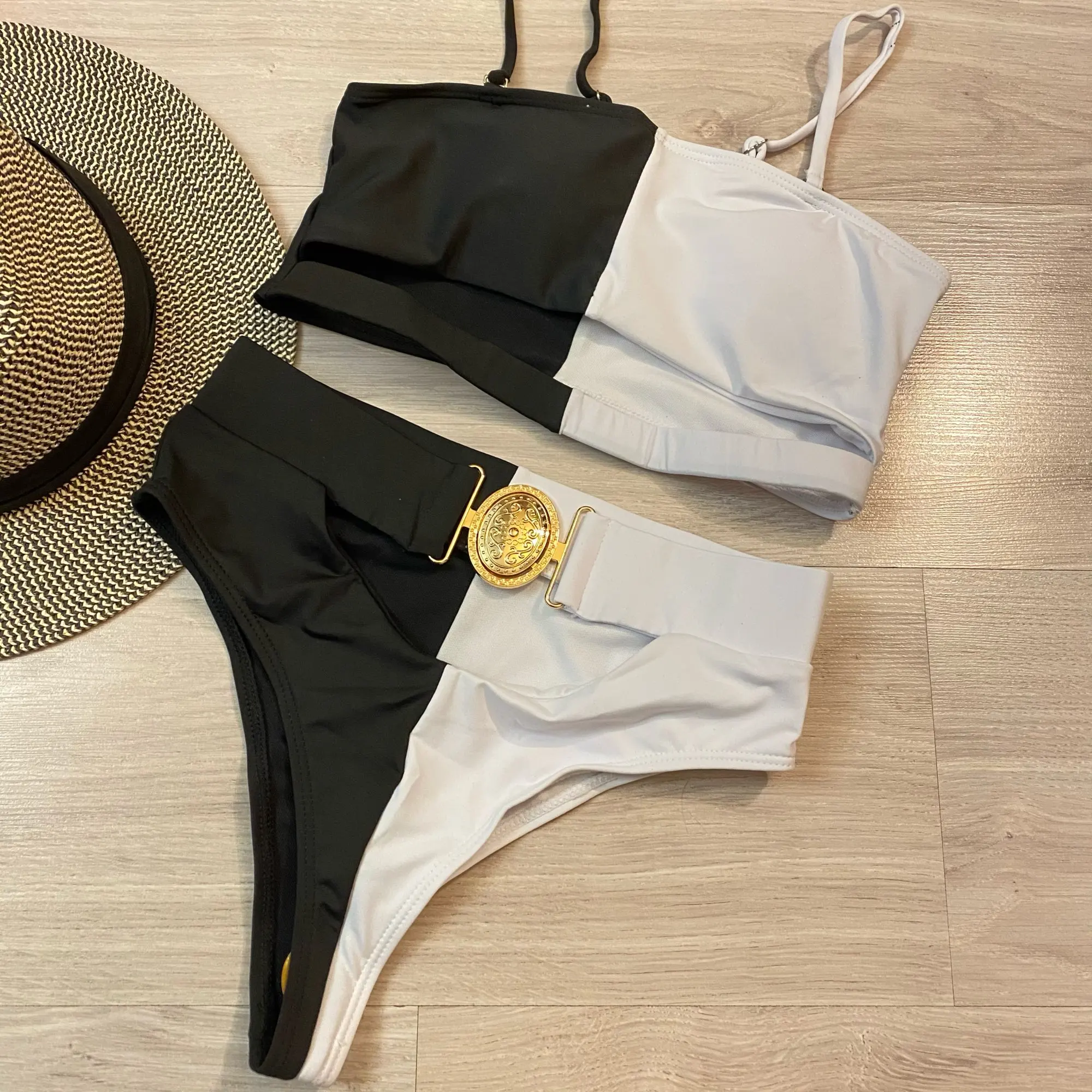 Женский комплект бикини, черный купальник из двух частей с высокой ...