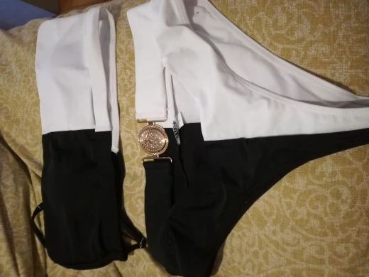 Бикини женское в рубчик, с металлическими цепочками, V2989