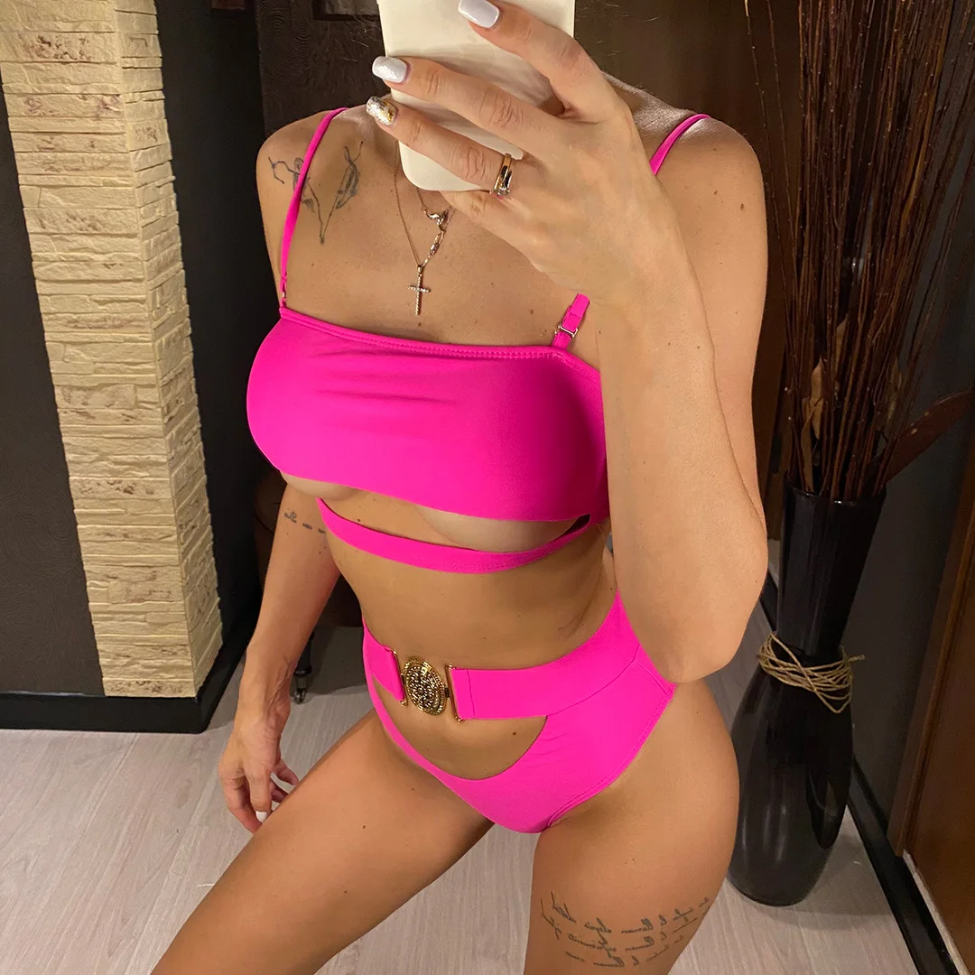 Сексуальное Бразильское бикини с металлическими кольцами, 2021, жен...