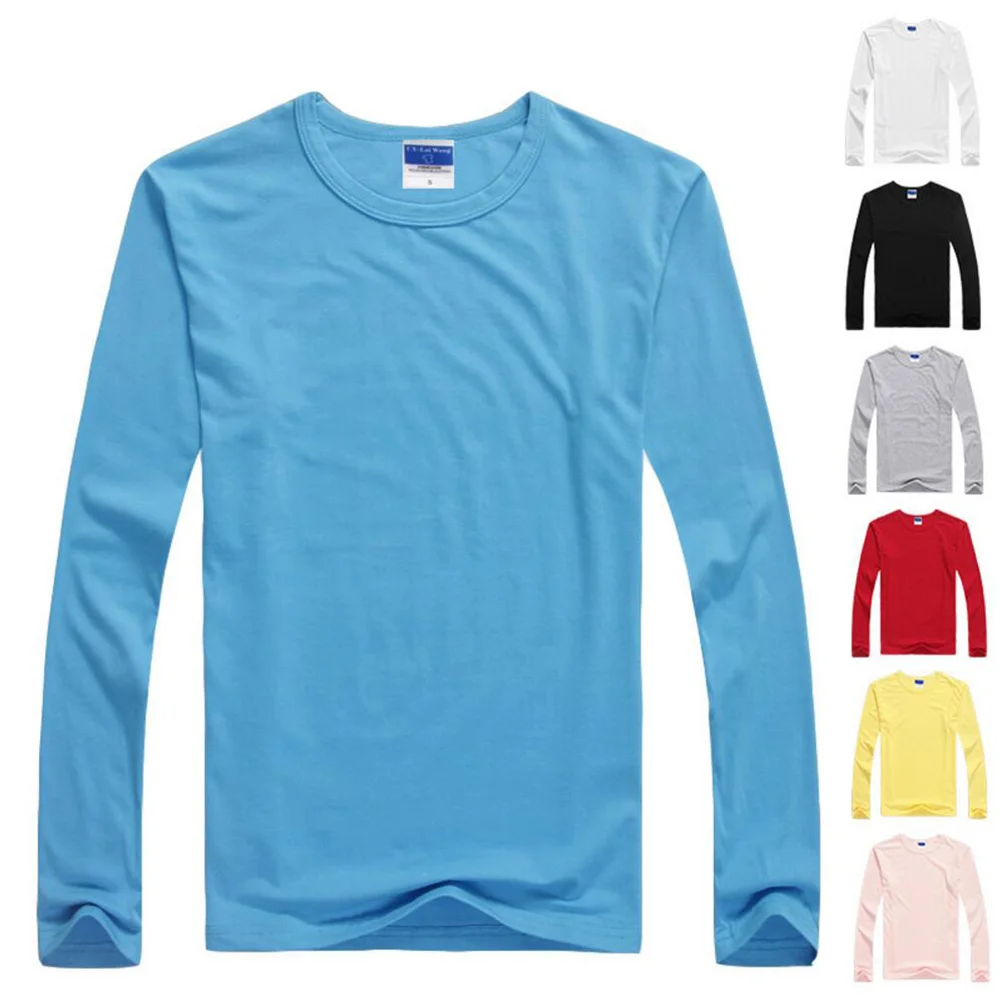 Женская футболка с длинными рукавами из лайкры и хлопка Camisa Masculina, Топы без рисунков, S-2XL, простая футболка с круглым вырезом