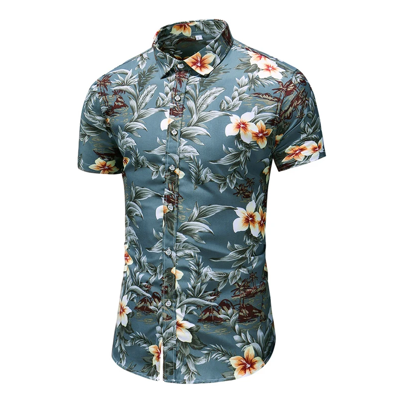 2022 летняя рубашка с коротким рукавом, мужская повседневная Цветоч...