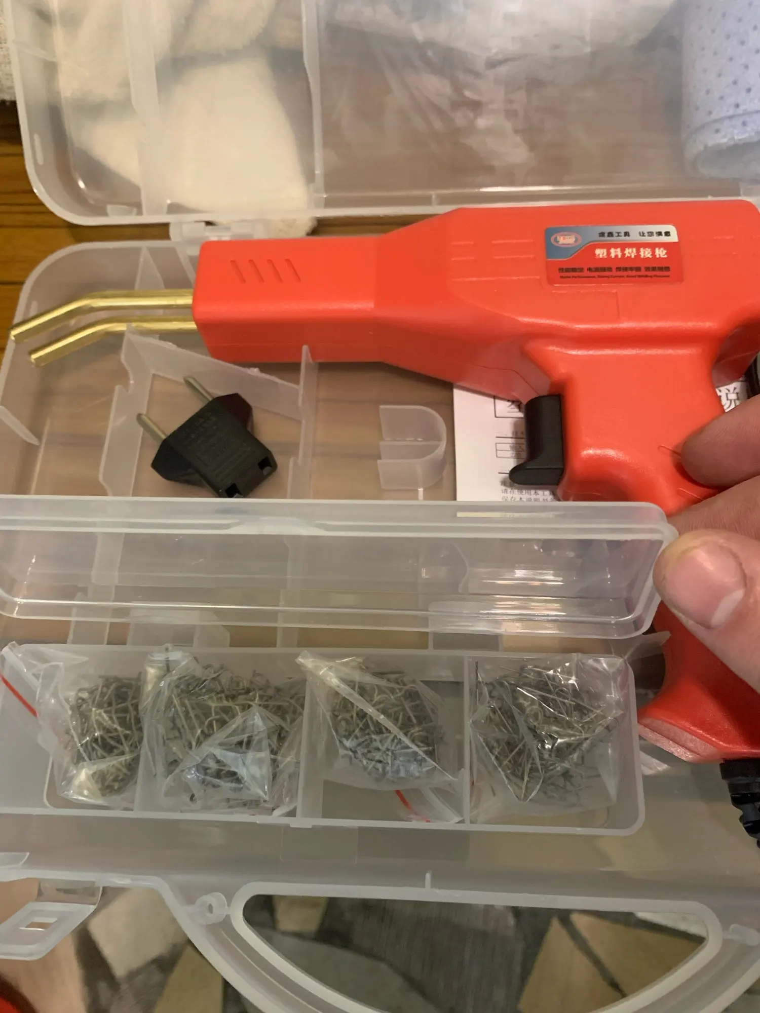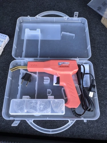 Доставка дней 40. Качество отличное. Кейс пришел с отломанным уголоком - сразу применил скрепки. Накал мгновенно - единственное - как вдавил в пластик- нужно чутка подождать пока пластик застынет и скрепка вытащится из пистолета. Скрепки можно отламывать пальцами - металл лопается за подлицо плоскости. В комплекте инструкция на китайском. 4 вида скрепок небольшое количество. Хорошая вещь! Рекомендую! Strongly recommend!