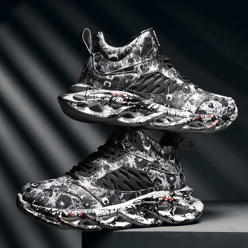 Мужские кожаные кроссовки, модные мужские кроссовки, Сникеры с рисунком в виде граффити удобная обувь, Мужская Уличная прогулочная обувь светильник Кая обувь для бега