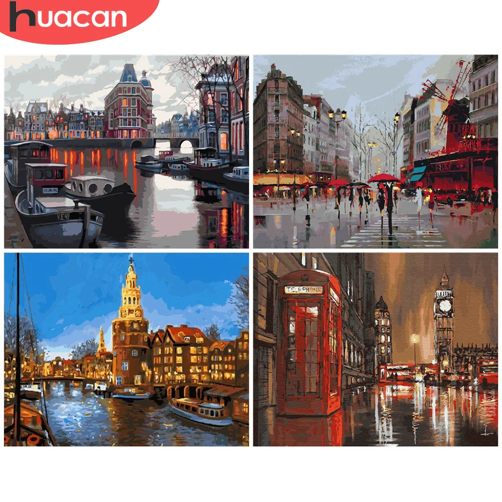 HUACAN картина маслом по номерам городской пейзаж акриловый рисунок...