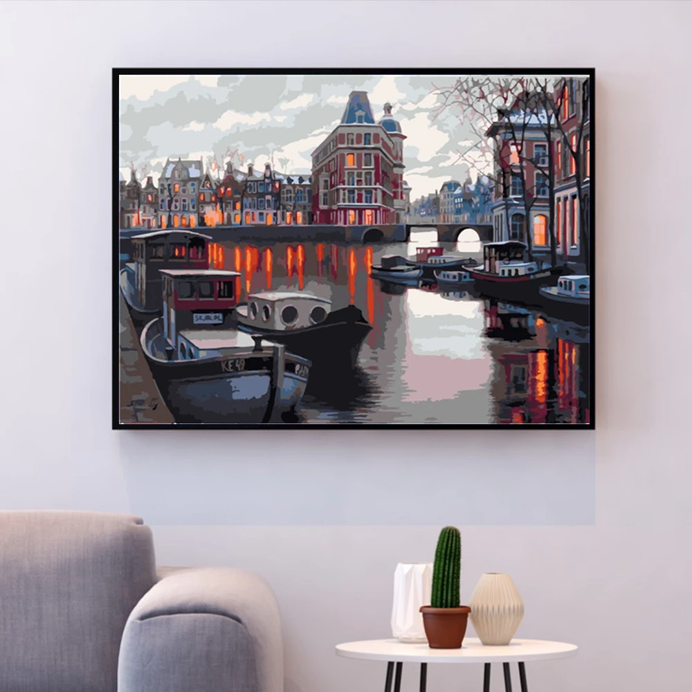 HUACAN DIY картинки по номеру город пейзажные наборы домашний декор...