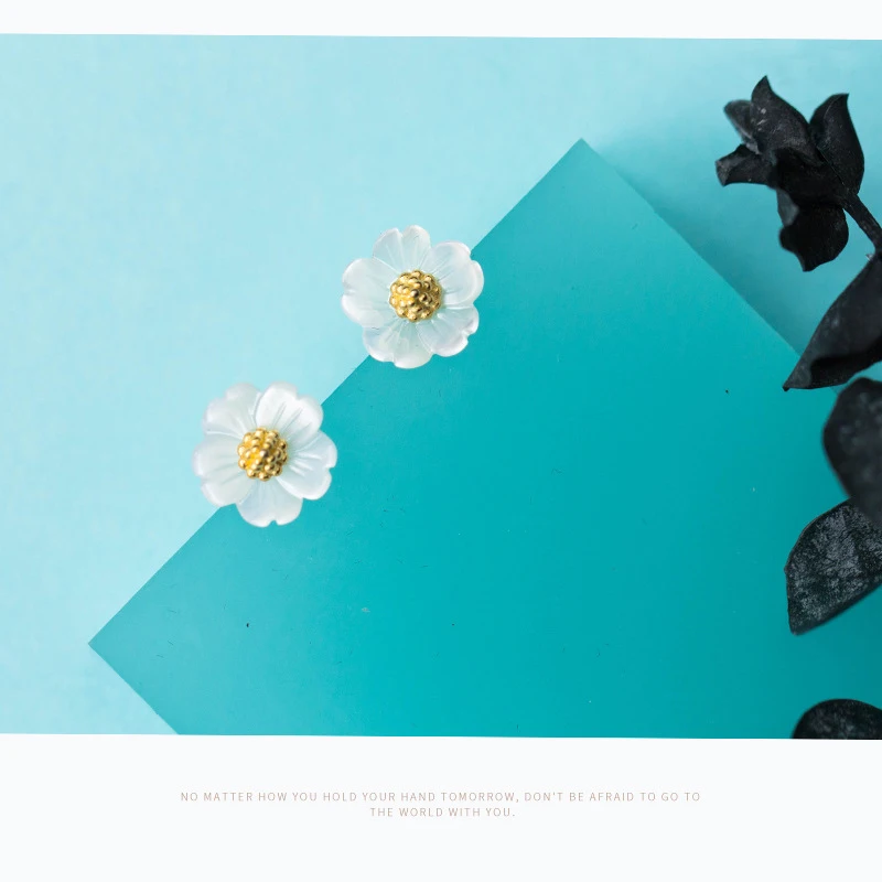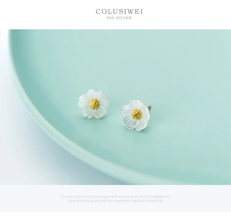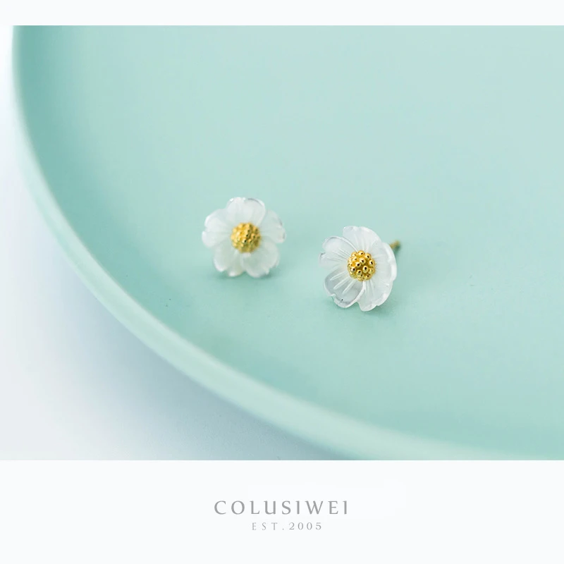 Colusiwei Реальный 925 стерлингового серебра Белый, натуральная основа, цветок, серьги-гвоздики для женщин Золотой Цвет цветок Серебряный 925 ювелирные изделия Brincos