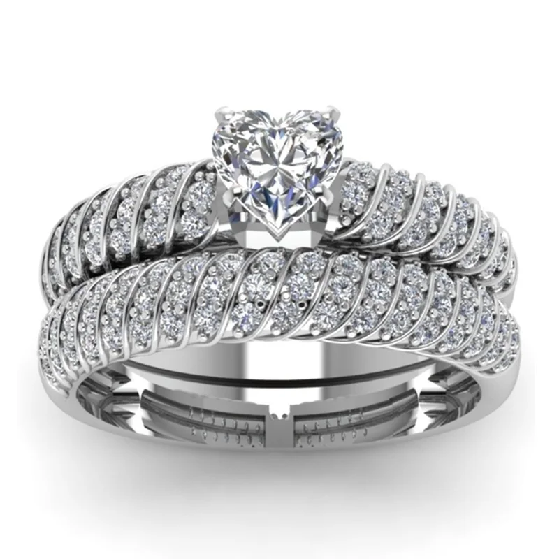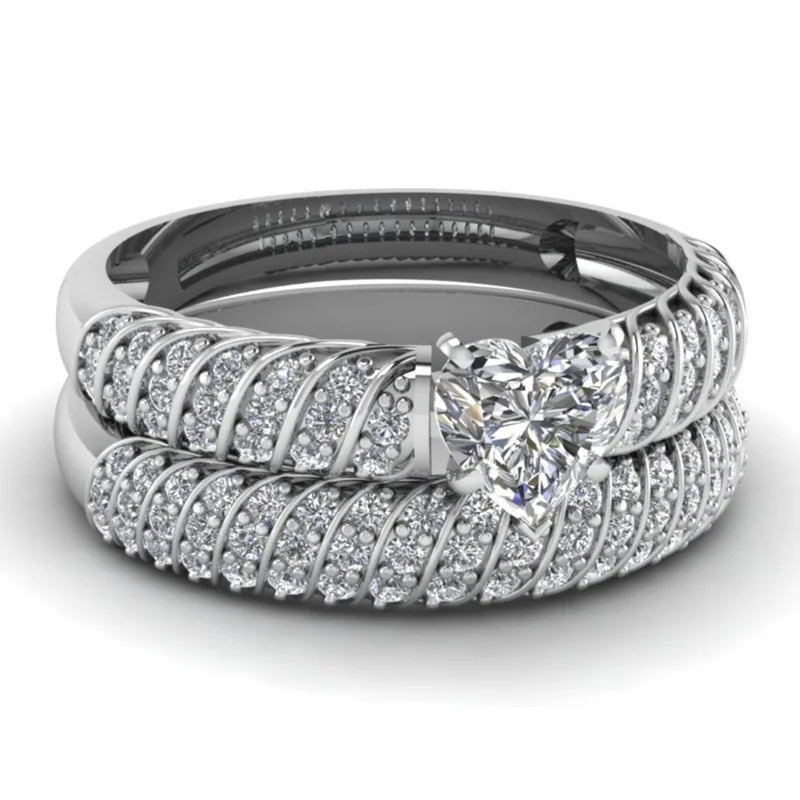 Модные парные кольца, Женское кольцо с белым сердцем и кристаллами ...