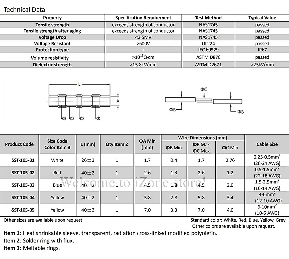 Материал: ПЭ, пайлер Цвета и размер: Белый: 0,2-0,5 ≤мм AGW:26-24 Красный: 0,5-1,5 ≤мм AWG:22-18 Синий: 1,5-2,5 ≤мм AWG:16-14 Желтый: 4,0-6,0 ≤мм AWG:14-12 Посылка: на полиэтиленовый пакет с молнией 100/Сумка Диапазон рабочих температур: ● Минимальная температура расплава припоя: 138 °C ● Минимальная температура усадки: 80 °C ● Рабочая температура:-55 ℃ - 125 ℃ ● Температура усадки: >160 ℃ спецификация цвет: желтый, синий, красный, белый. Другие особенности ★【Быстрая и простая обработка 】просто поместите зачищенные провода в паяльную втулку и приложите тепло для завершения соединения. ★【Диверсификация инструментов 】провод может быть подключен к пожарным пистолетам, зажигалкам и свечам. ★【Дружеское предупреждение 】 при нагреве, не сосредоточивайтесь на припое посередине. Лучше ставить разъемы примерно на 0,6 фута над пламенем, чтобы избежать чрезмерного местного нагрева. Если у вас возникнут дополнительные вопросы, сообщите нам об этом продавцу. Мы сделаем все возможное, чтобы помочь вам и удовлетворить ваши требования. ★Широко используется для большинства ремонтных работ Разъемы можно использовать на автомобиле, лодке, дома, прицепе, фургоне или мотоцикле. Эти термоусадочные стыковые клеммы помогут вам каждый раз создавать безопасные и прочные соединения. Это также отличный подарок для вашего отца или для тех, кто любит ремонтный проект «сделай сам». Вы никогда не пожалеете, что приготовьте его дома к внезапному ремонту. ★★★Примечание: Из-за разницы между различными мониторами изображение может не отражать реальный цвет изделия. Спасибо за понимание!