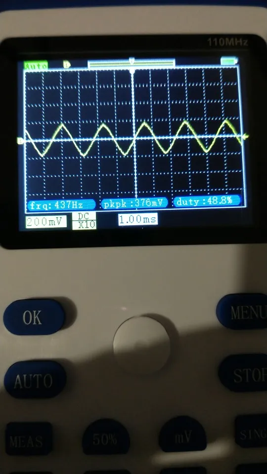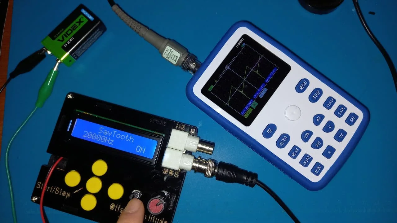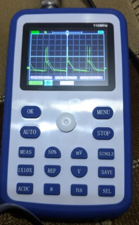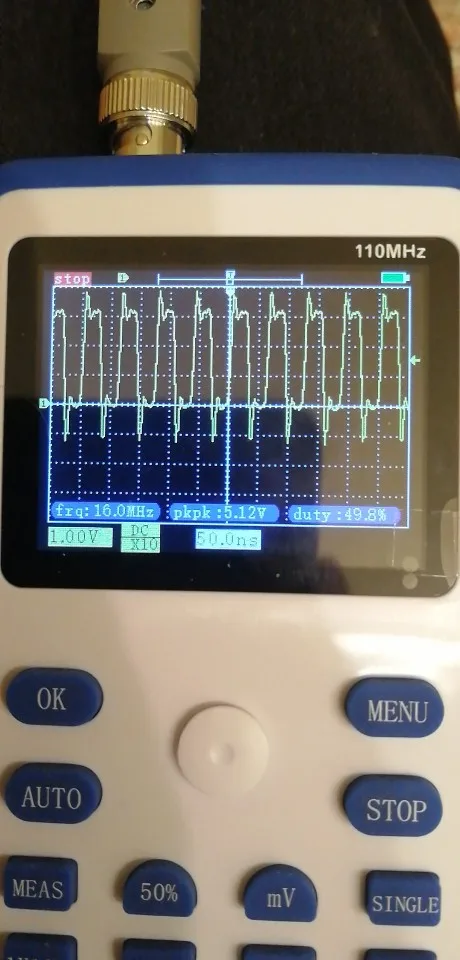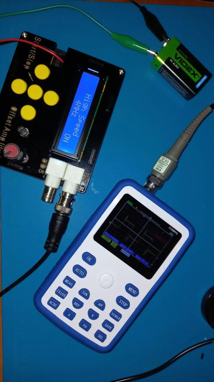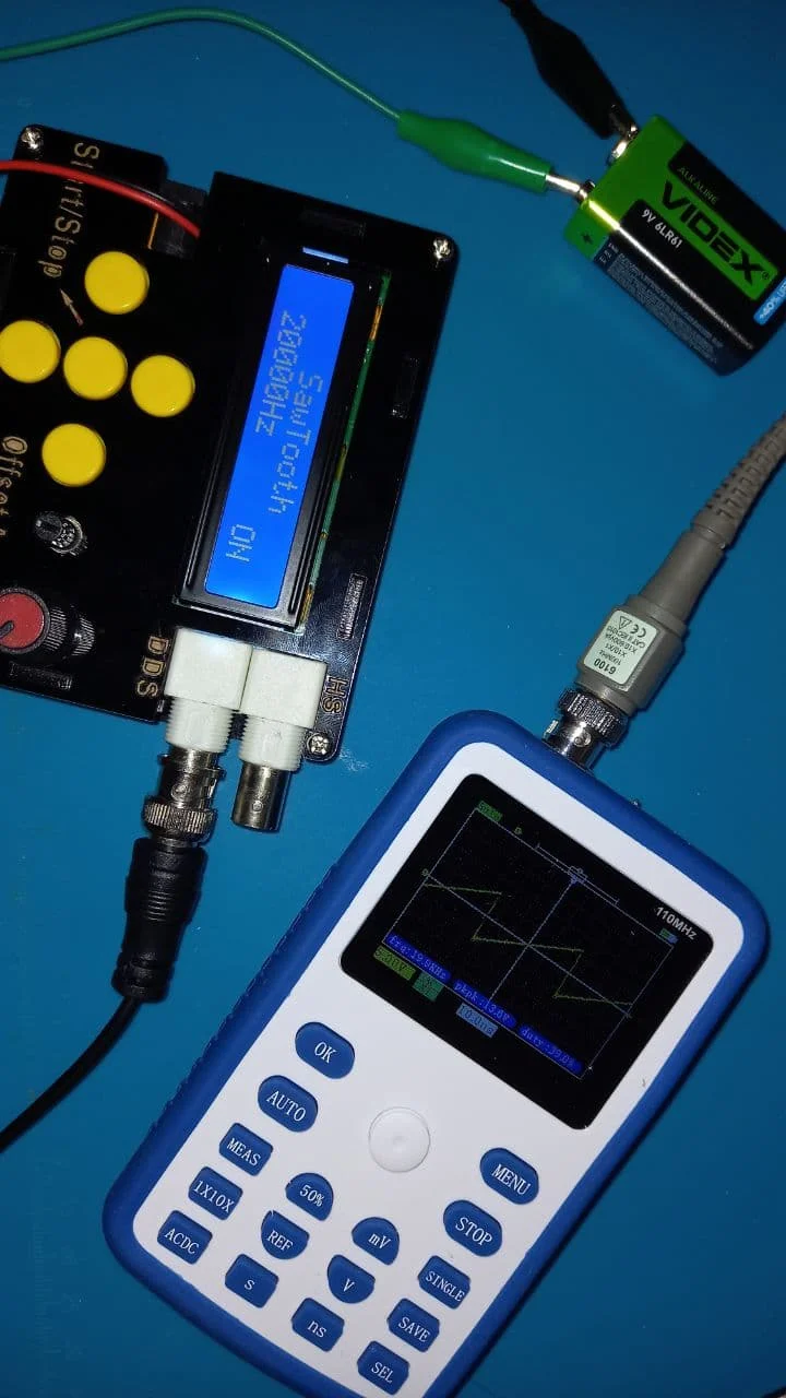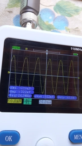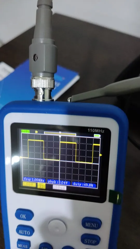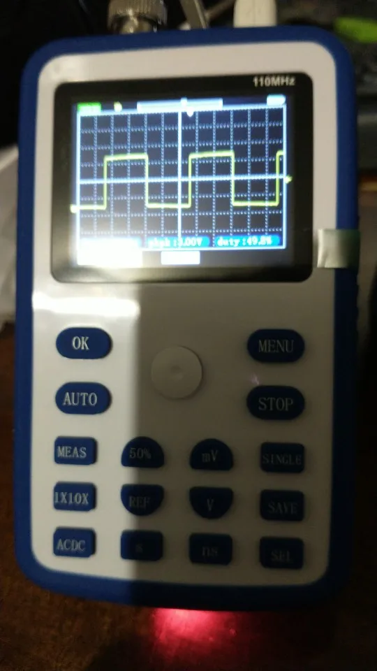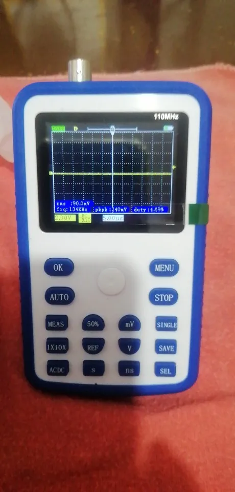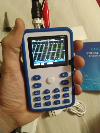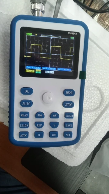 Хороший осциллограф для домашнего использования. А учитывая его цену - вообще не имеет аналогов по соотношению цена/качество. Пробовал измерить кварц на 16 МГц, виден небольшой звон и overshoot. Однако прибор чётко измерил частоту сигнала. Немного ошибается с измерением амплитуды, поэтому лучше ориентироваться на саму осциллограмму. В целом прибор собран качественно. Хорошая яркость экрана, есть тестовый контакт генератора меандра 1 кГц. В комплекте чехол, щуп, крокодилы и зарядка. Несмотря на то, что прибор одноканальный, есть возможность сохранить форму одного сигнала и наложить на него другой измеренный сигнал. Крч, прибор пушка! Берите этого пиздюка, не пожалеете!