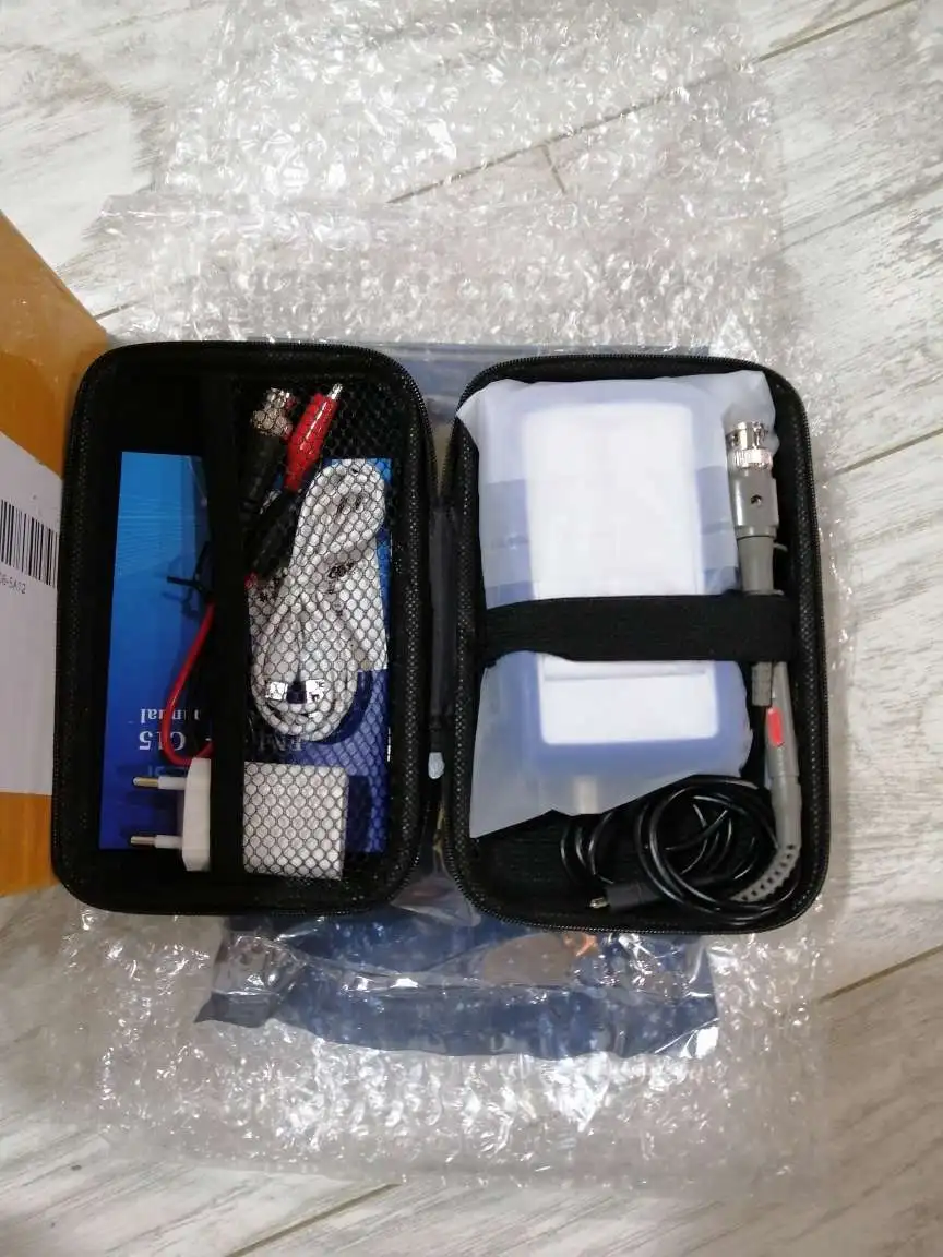 Долго выбирал, смотрел обзоры, и остановился на этой модели, не пожалел. Это мой первый осциллограф. Мануал на английском, но почти всё понятно и так, можно перевести смартфоном, есть обзоры в сети и перевод от предыдущей модели. Получил быстро, но не подтверждал, чтобы проверить в эксплуатации.. Помаленьку учусь, осваиваю. Продавец продлевал два раза мою защиту, Огромное спасибо ему за терпение и заботу, а также за быстрые ответы перед покупкой, за коммуникацию и поддержку. Комплект стандартный, упаковка отличная, запаха нет. При зарядке горит красный диод, когда зарядится - синий. Надо бы разобрать и посмотреть плату на наличие флюса. Покупкой очень доволен. Не бойтесь приобретать, если вы новичок, разберетесь. Отличный сервис и магазин, внимательный продавец, ставлю наивысшую оценку 5555555555++++++++++Успехов и процветания.