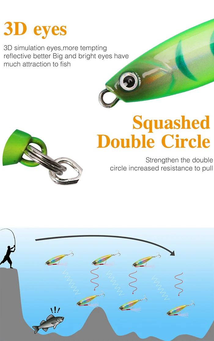 Характеристики продукта:1. Приманка изготовлена с фигуркой в форме ивы, предназначенной для производства превосходной способности к забрасыванию на большие расстояния2. Он оснащен корпусом в форме кожуры, который производит медленное боковое падающее действие, которое удерживает его в зоне удара в течение более длительного периода времени3. Уникальный светящийся материал, даже в середине ночи может прочно привлечь внимание целевой рыбы4. Изготовлен из высокопрочного материала и его интегральной структуры не легко сломать5. Предлагается в диапазоне цветов, мульти-угол отражения6. Острые крючки, связанные с косичками и проникающими характеристикамиИнформация о продукте:1. Тип: металлическая приманка2. Вес: 7 г3. Длина: 42 мм4. Крючок: фирменные высококачественные крючки5. Цвет: 4 цвета6. Посылка: индивидуальная упаковка