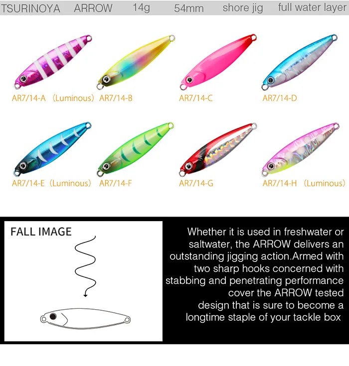 Металлическая приманка TSURINOYA, быстротонущая светящаяся приманка, Воблер для приманки по берегу, искусственная металлическая приманка, 7 г, 14 г, 18 г, троллинговая приманка для лодки