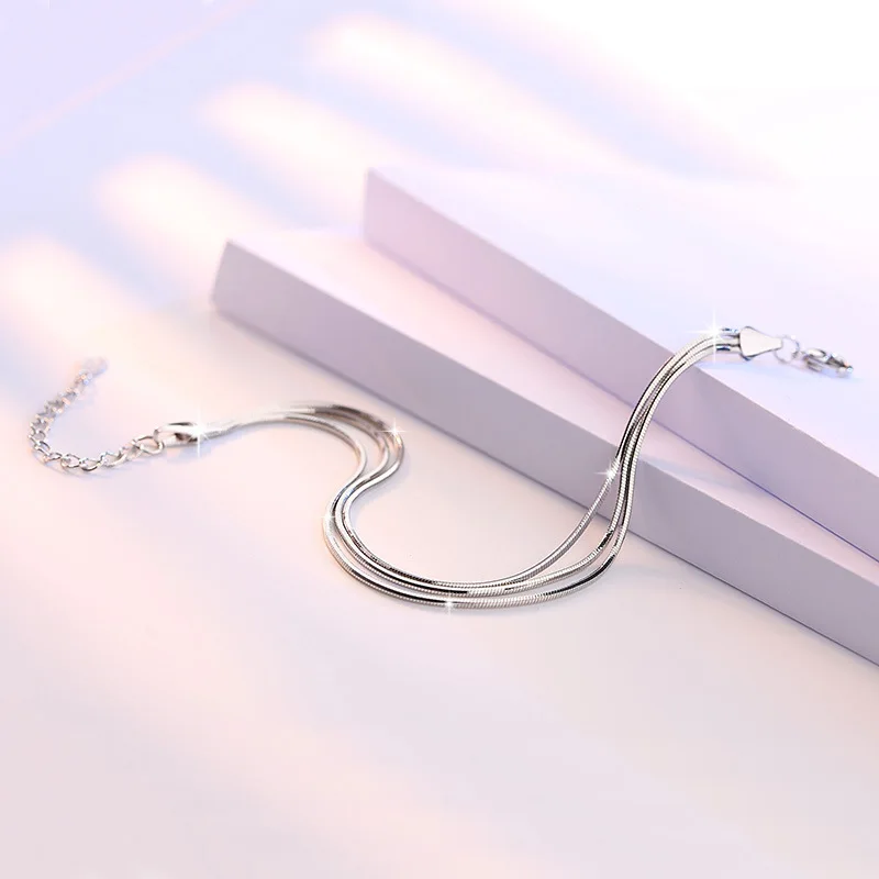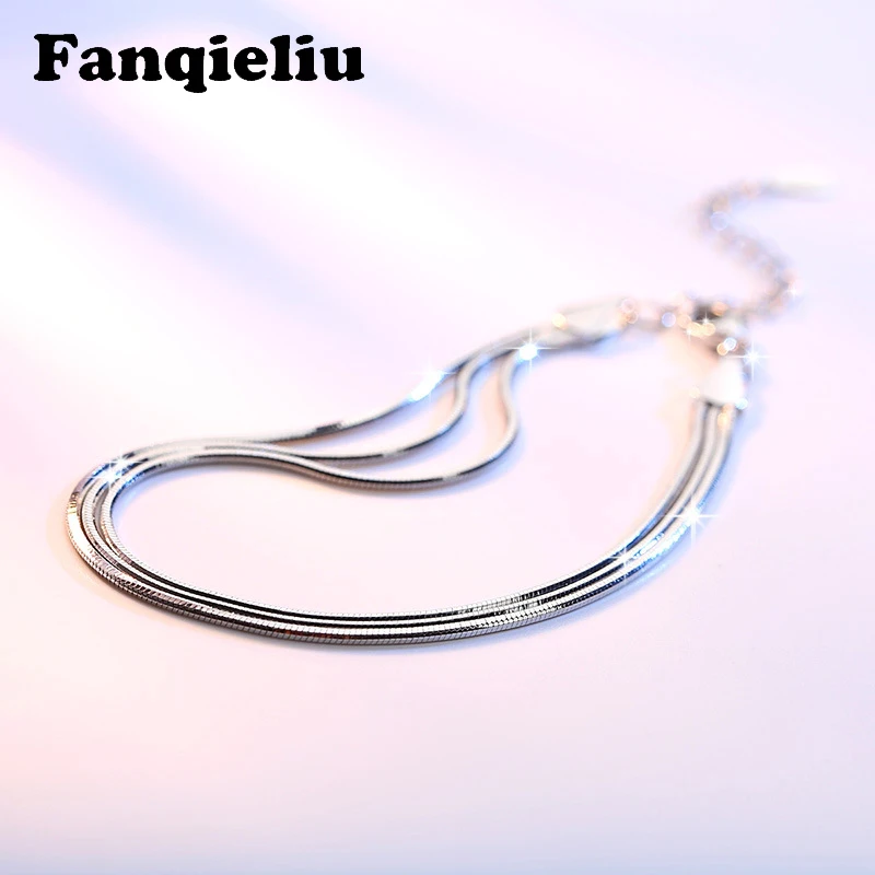 Женский серебряный браслет Fanqieliu, регулируемый браслет из настоящего серебра 925 пробы с цепочкой змейка, 3 шт., FQL20F229