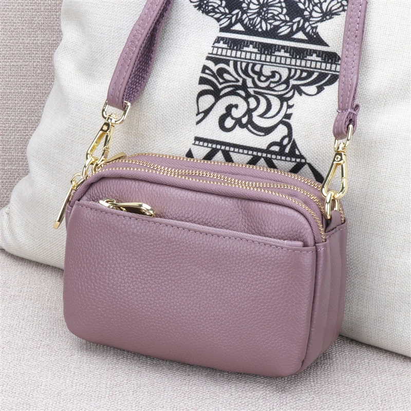 Кожаная сумка для женщин, новинка 2021, маленькая квадратная сумка на плечо из воловьей кожи, модная многослойная мини-сумка с косой молнией
