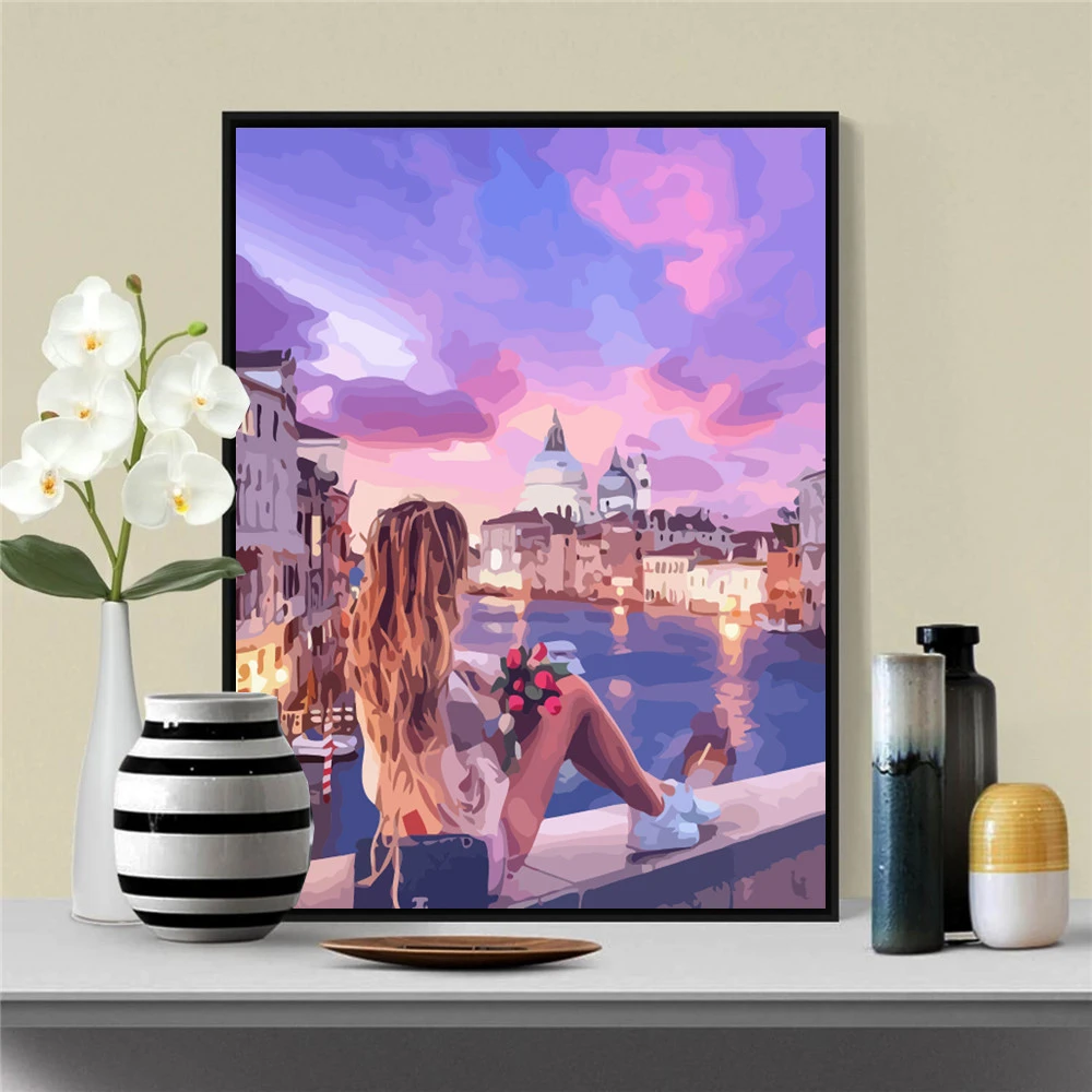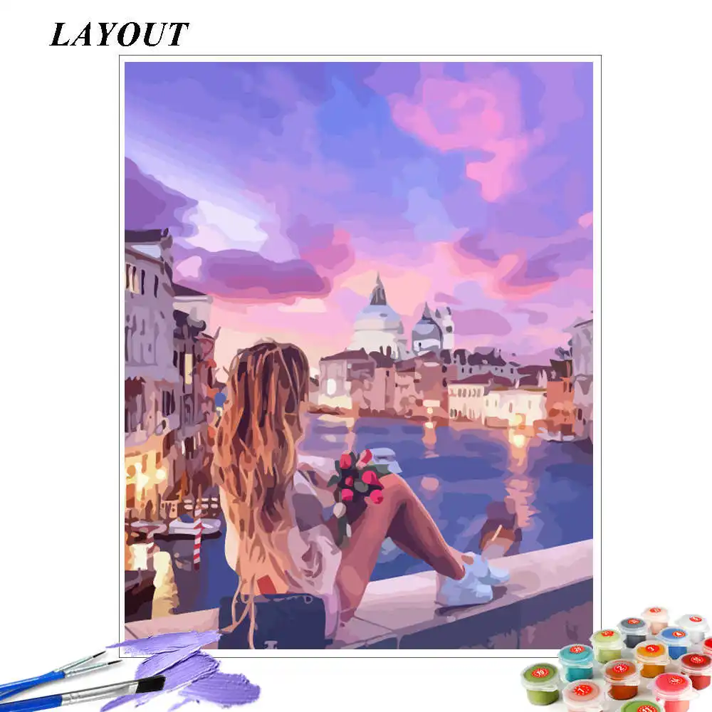Картина по номерам HUACAN, городской пейзаж, Настенная картина, уни...