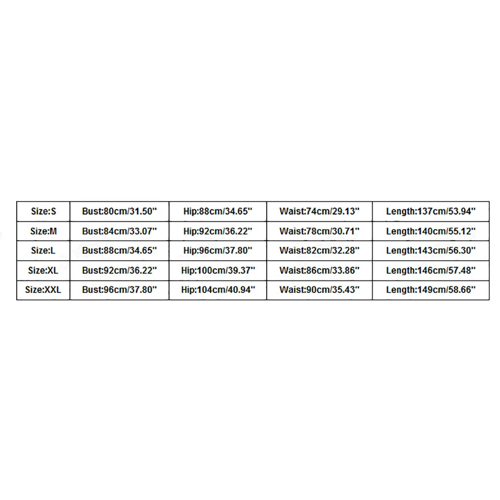 РазмерБюстБедраТалияДлинаS80 см/31,50''88 см/34,65''74 см/29,13''137 см/53,94''М84 см/33,07''92 см/36,22''78 см/30,71''140 см/55,12''L88 см/34,65''96 см/37,80''82 см/32,28''143 см/56,30''XL92 см/36,22''100 см/39,37''86 см/33,86''146 см/57,48''XXL96 см/37,80''104 см/40,94''90 см/35,43''149 см/58,66''