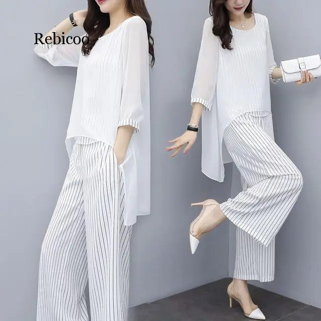 Костюм брючный женский шифоновый в полоску, костюмы со штанами для матери наряд для невесты, формальный свадебный комплект из 3 предметов с широкими штанинами