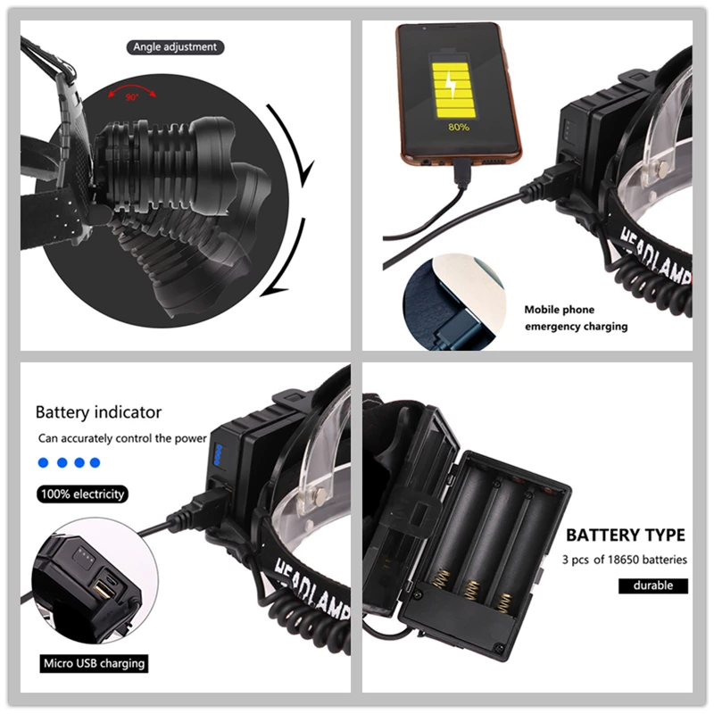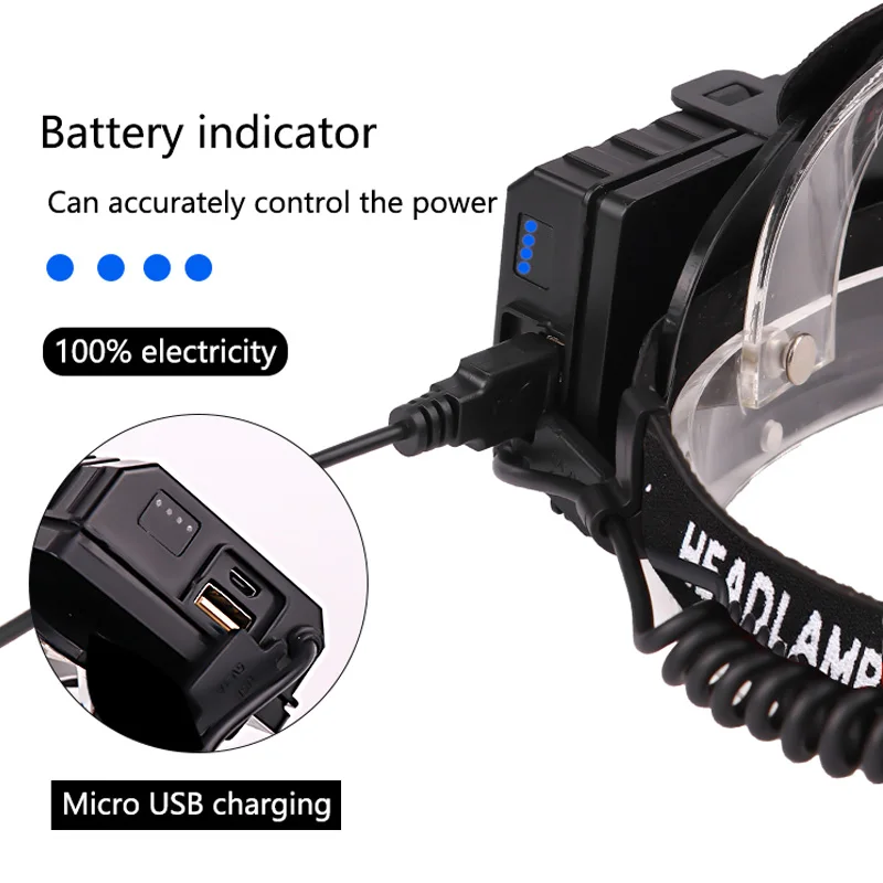 Светодиодный налобный фонарь XHP70, мощный Головной фонарь с USB-портом 18650 люмен, внешний аккумулятор с зумом, уличный фонарь для пешего туризма, рыбалки