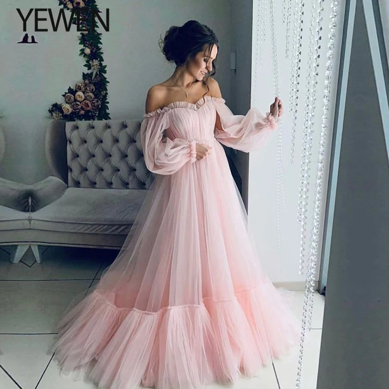 Вечерние платья с открытыми плечами, длинное фатиновое платье для б...