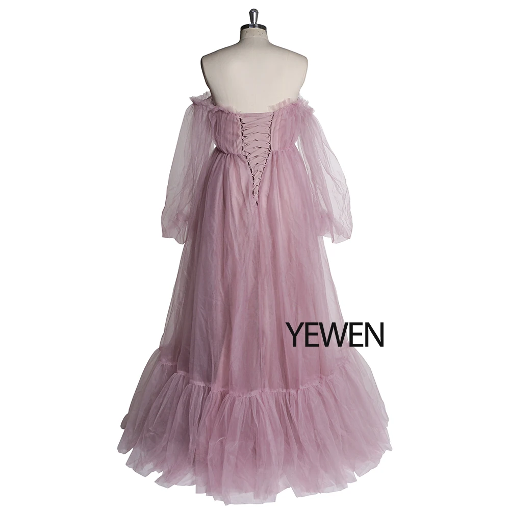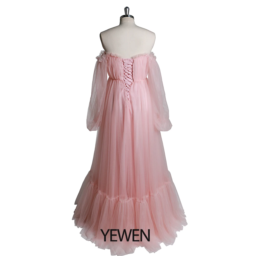 Тюлевое вечернее платье для беременных, с открытыми плечами и шнуро...