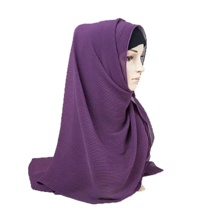 10 шт.партия Женский мнущийся шифоновый шарф с пузырьками, однотонные шали, плиссированная повязка для головы хиджаб большого размера, мусульманский шарф, оптовая продажа