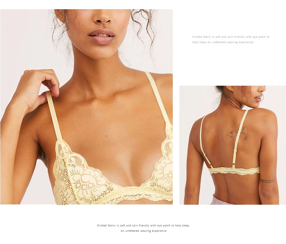 Я искал Бюстгальтеры без кольца, треугольника и кружева. Я был очень удивлен качеством. Они мягкие, они даже не зудят, как другие кружева, и размер подходит мне идеально. Я люблю желтый цвет!