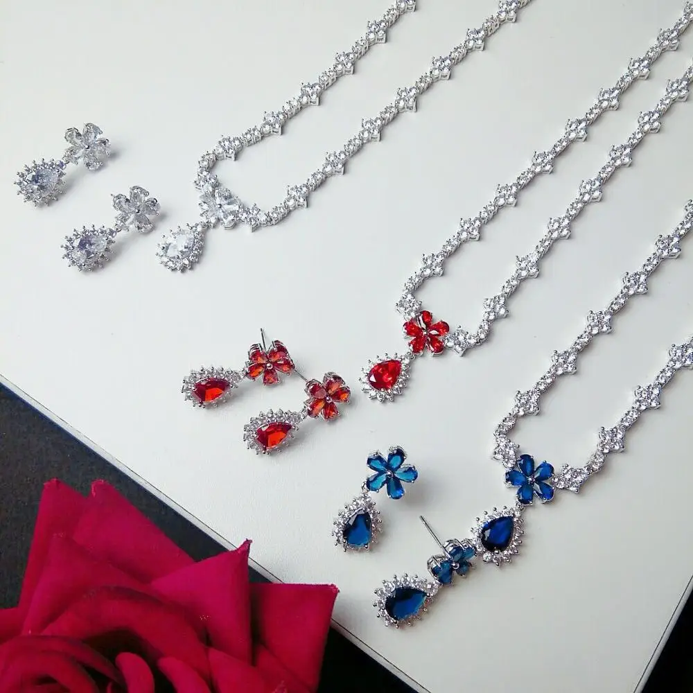 HIBRIDE Роскошный прозрачный кристалл циркония серьги и ожерелье на...