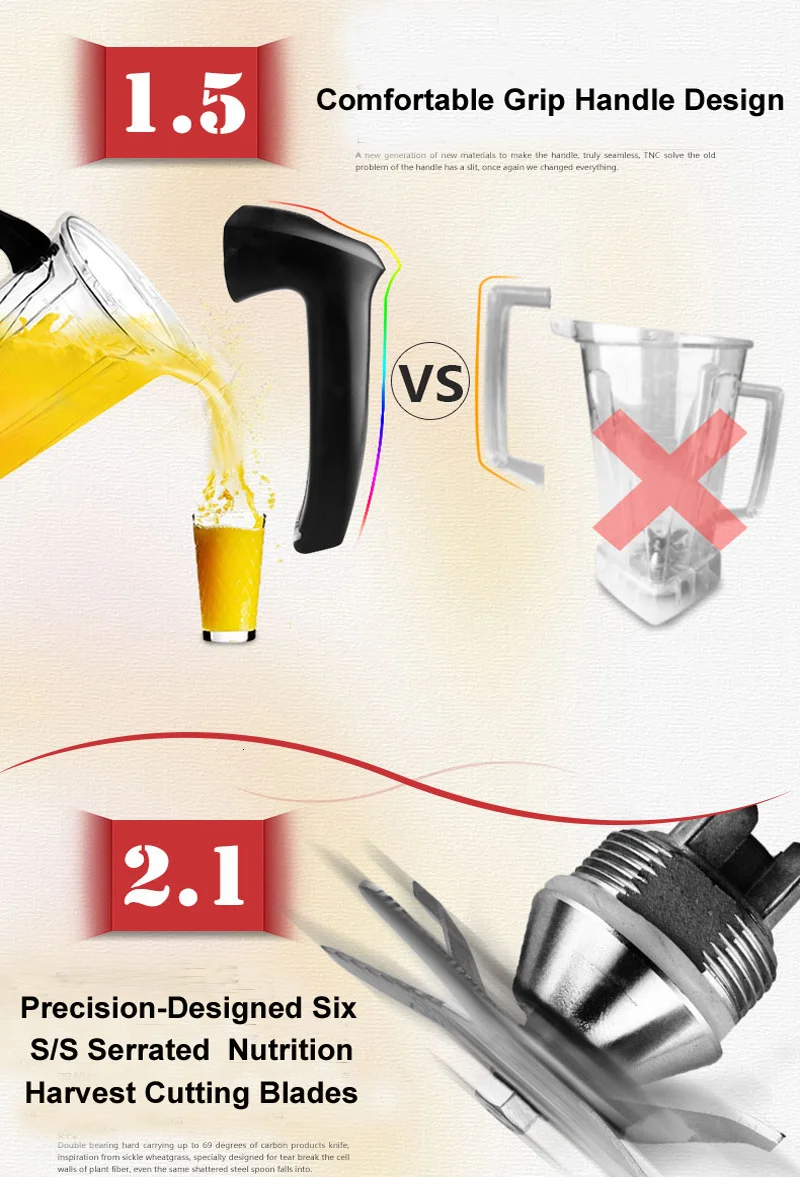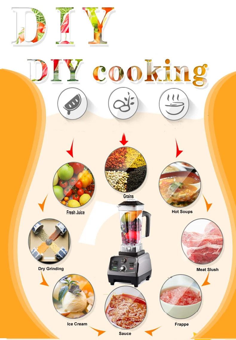 Небьющаяся сертифицированная FDA 2L Высококачественная плотная прозрачная банка, без BPA с резиновой удобной решеткой.Сделать несколько напитков, таких как молочные коктейли, зеленые смузи, сухое измельчение, горячий суп, соусы, диета сырой пищи, мороженое, свежий сок и многое другое.