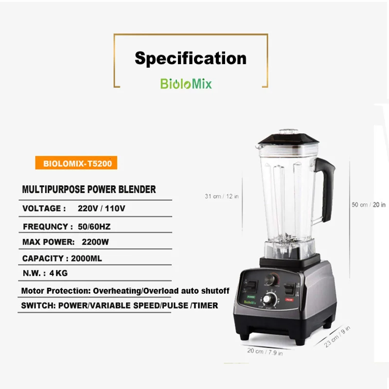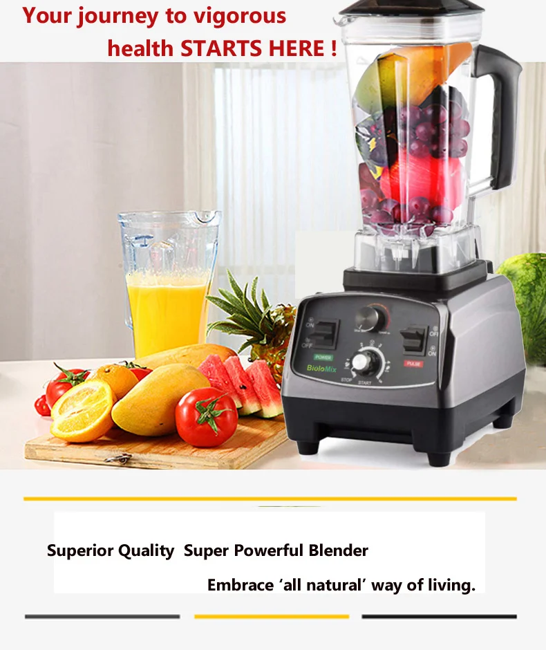 Автоматическая соковыжималка Biolomix, без БФА, блендер, миксер, сверхмощный кухонный комбайн, дробилка для льда, с таймером, для приготовления смузи