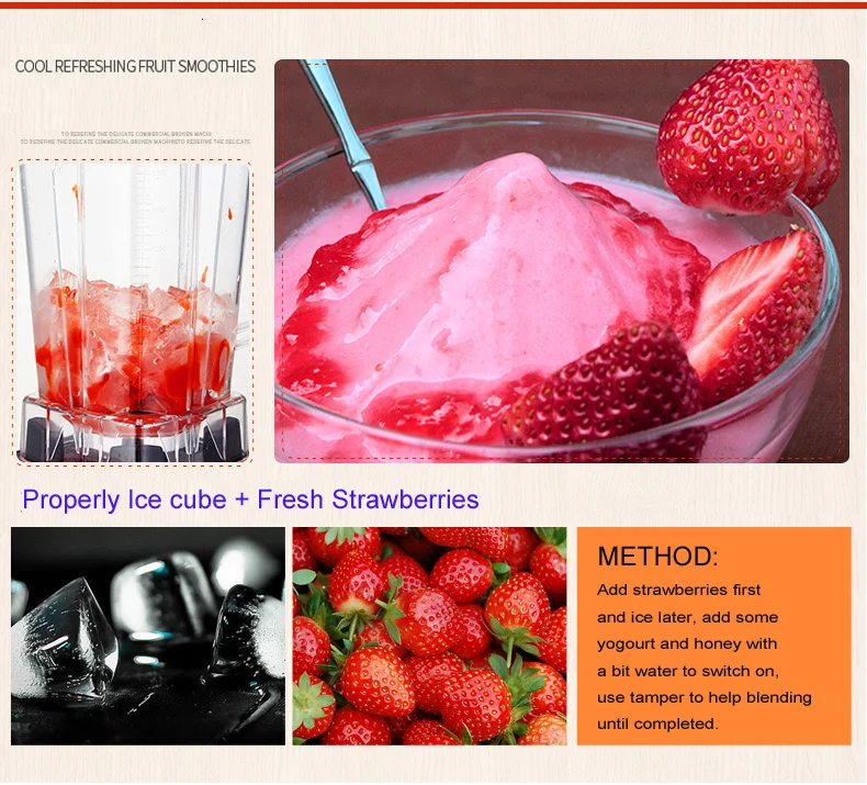 1. Как только вы получите блендер, пожалуйста, добавьте немного воды в контейнер, чтобы проверить, не запускайте его без чего-либо внутри, так как это плохо подходит для соединительной системы, не измельчайте сухие ингредиенты в течение 1 минуты.