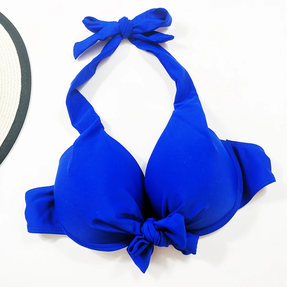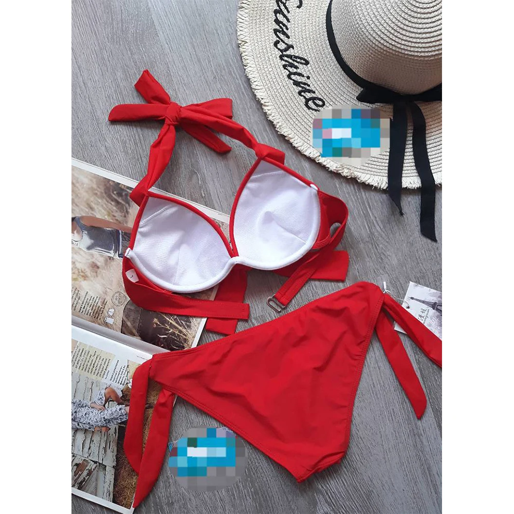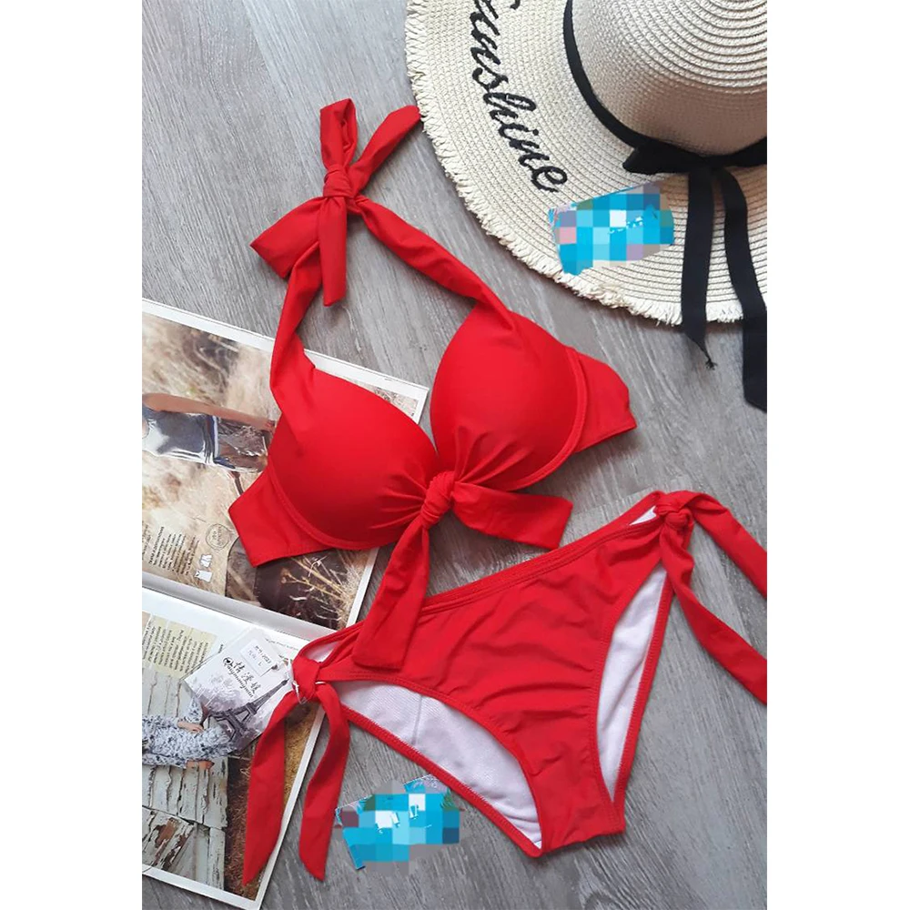 Купальник женский летний, с лямкой на шее, однотонный, красный, черный, пуш-ап, на косточках