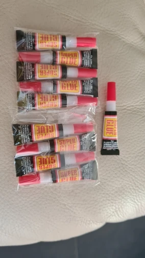 Пришла упаковка 10 штук. Клей как бы клеит хорошо, но сама упаковка не практична. Тюбики маленькие. Объём маленький. И если открыть один, то повторно не получится использовать. Потому что крышка не плотно закрывает тюбик. Высохнет через несколько дней.