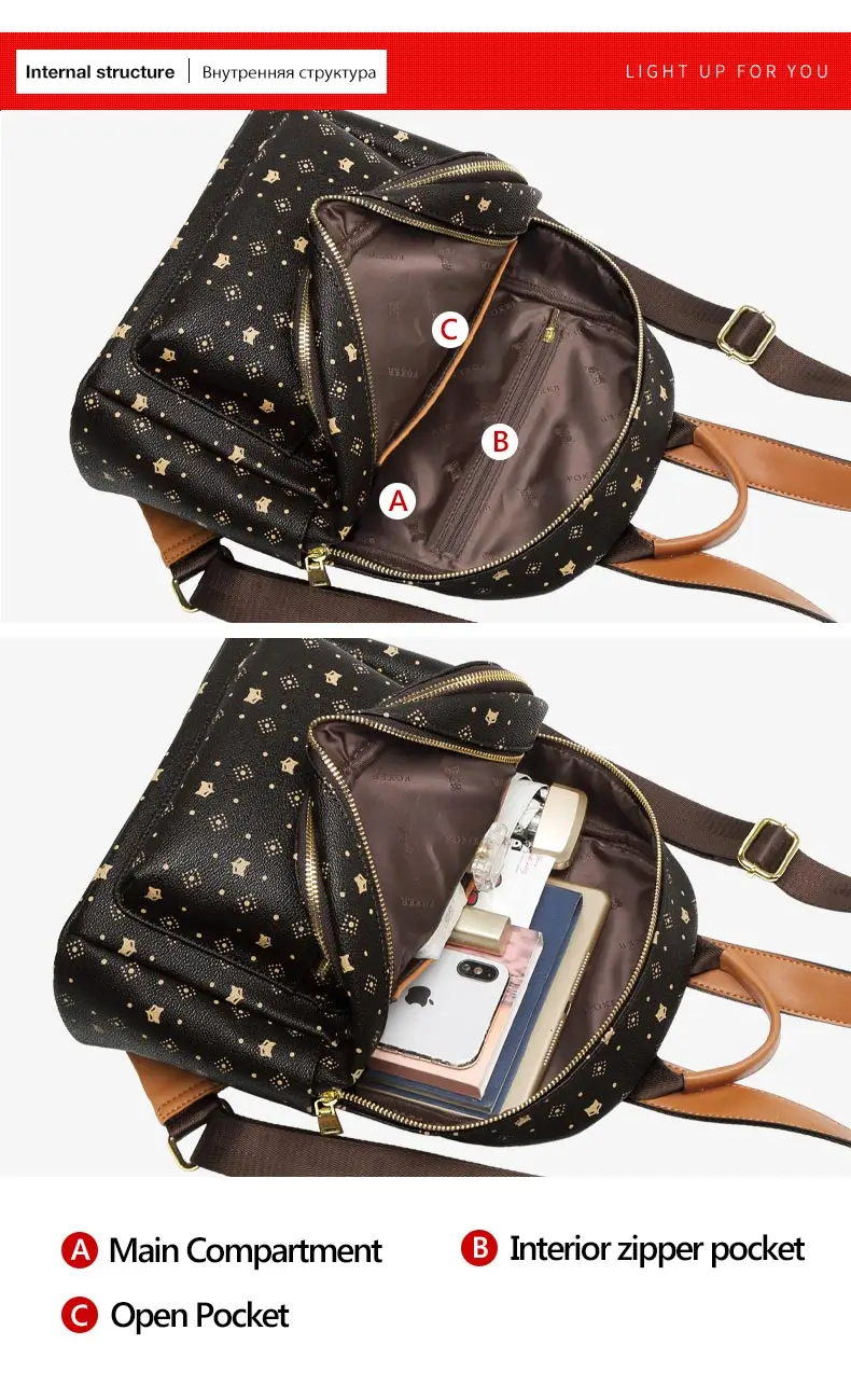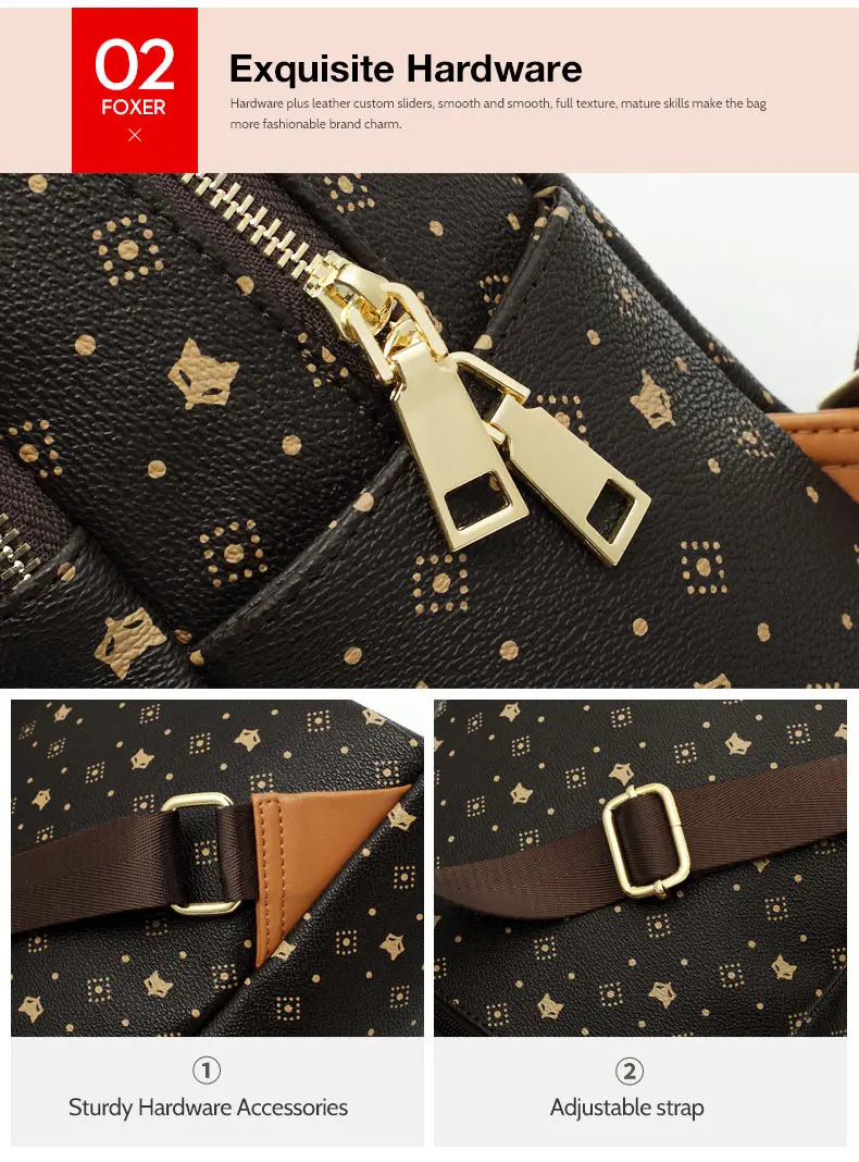 Модный женский рюкзак FOXER с монограммой, винтажная Дорожная сумка из ПВХ и кожи, вместительный ранец для женщин