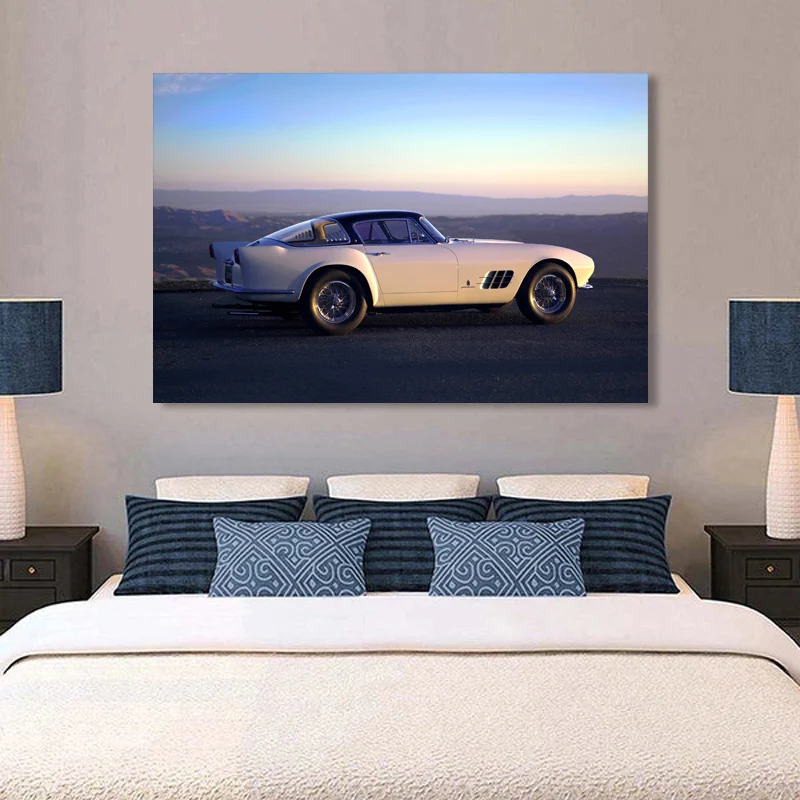 Картина на холсте с изображением автомобиля, шелковая, с красным ме...