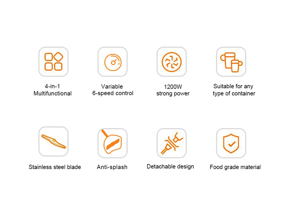 【 4-в-1Высокопроизводительный ручной блендер с 1200 ВтМощный двигатель, чтобы обрабатывать больше задач смешивания спокойно и идеально 2Острые 304 лезвия из нержавеющей стали могут быстро и легко резать еду,Идеально подходит для детского питания, супов, соков, смузи и многого другого.