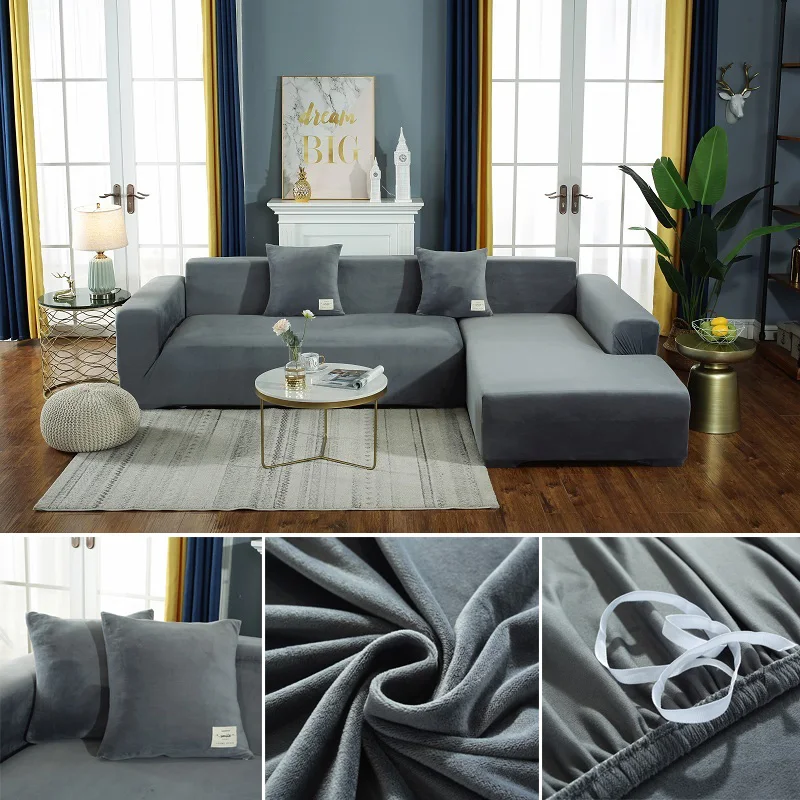 Чехол для дивана AiLife, из плюшевой ткани, бархатный, L-образный, нескользящий, чехол для углового дивана в гостиной, чехол с наволочкой