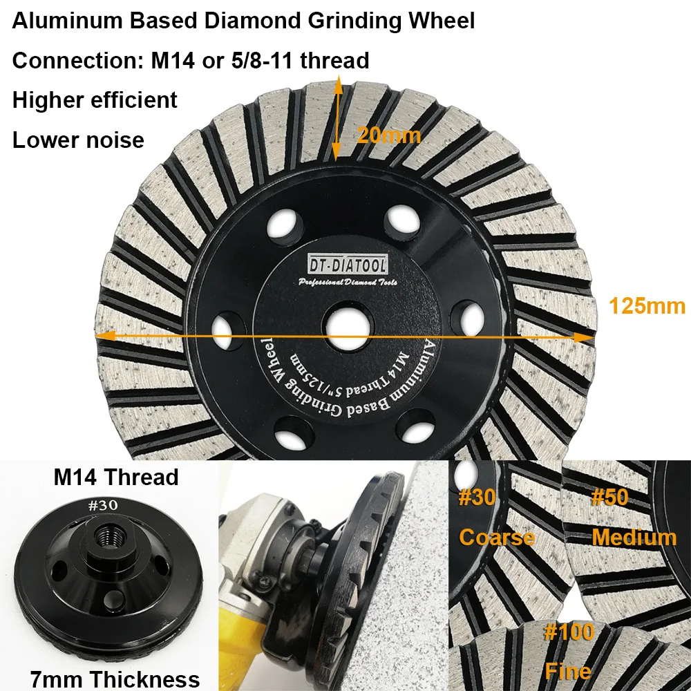 Алмазный шлифовальный диск на алюминиевой основе диаметром 125 мм5 дюймов, 2 шт., шлифовальный стакан, колесо для мрамора, гранита, резьба M14 или 58-11