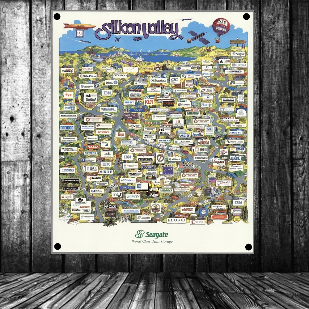 США, опубликованная в 1991, карта Кремниевой долины, Ретро Карта, флаг, баннер, гобелен, плакат, настенная ткань, печать, искусство, Декор для дома