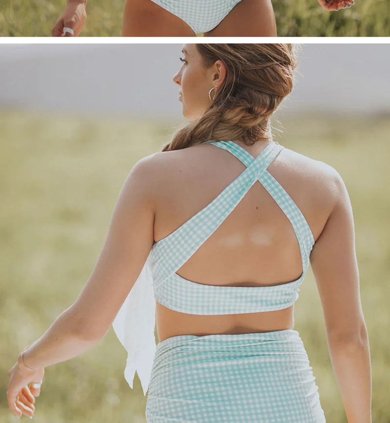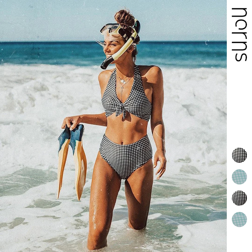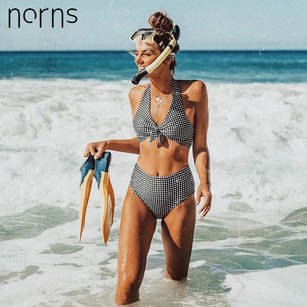 Norns черно-белое бикини в мелкую клетку, Женский раздельный купальник, быстросохнущее бикини с высокой талией