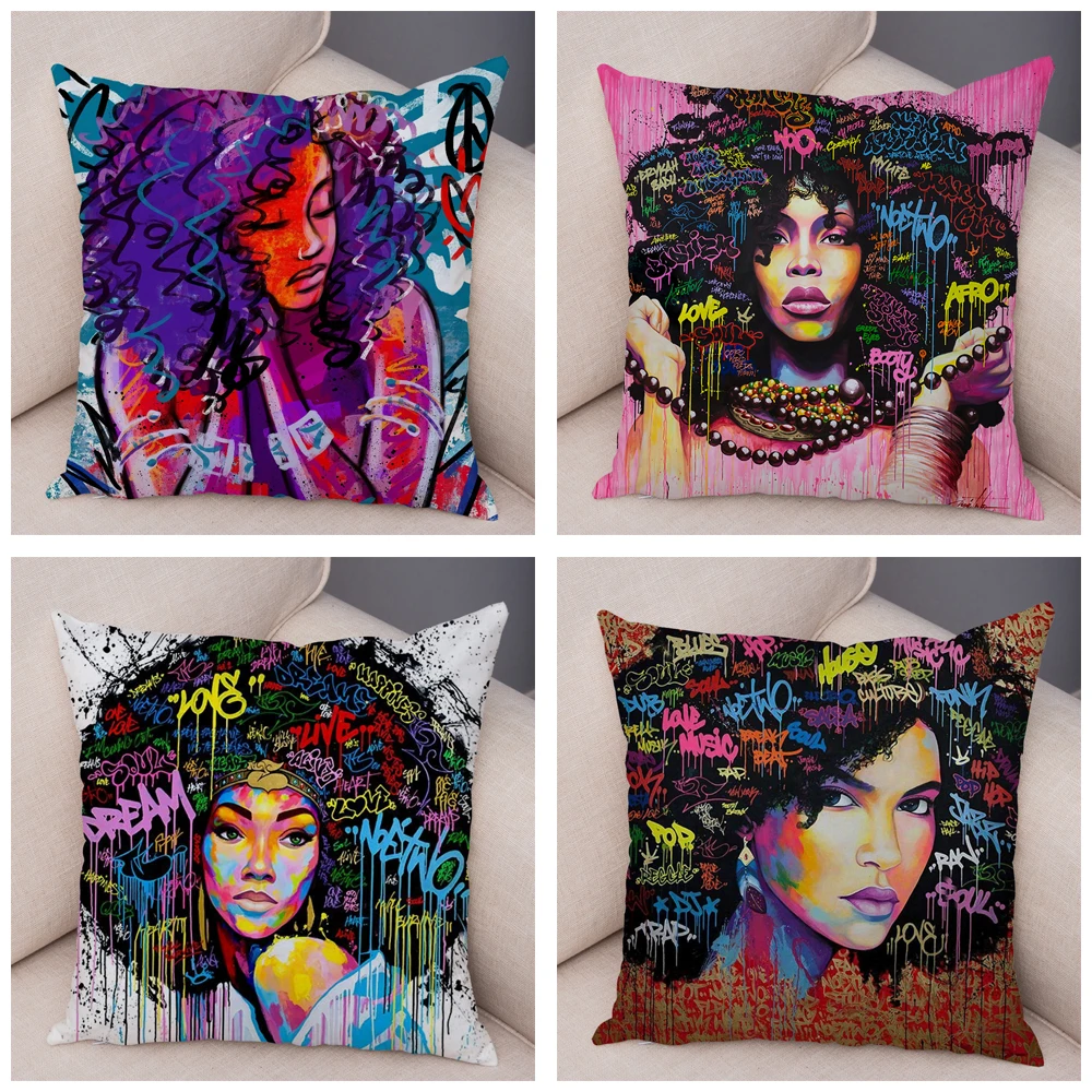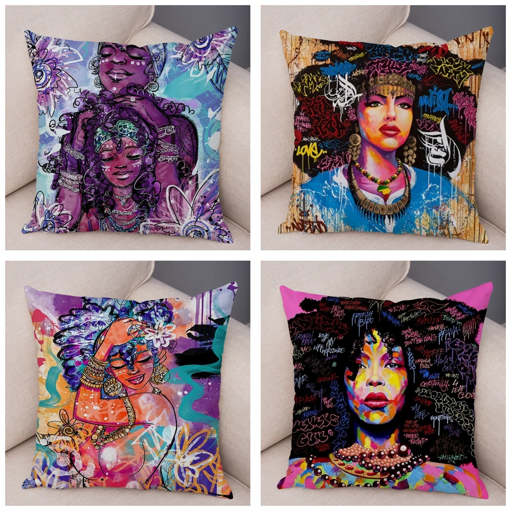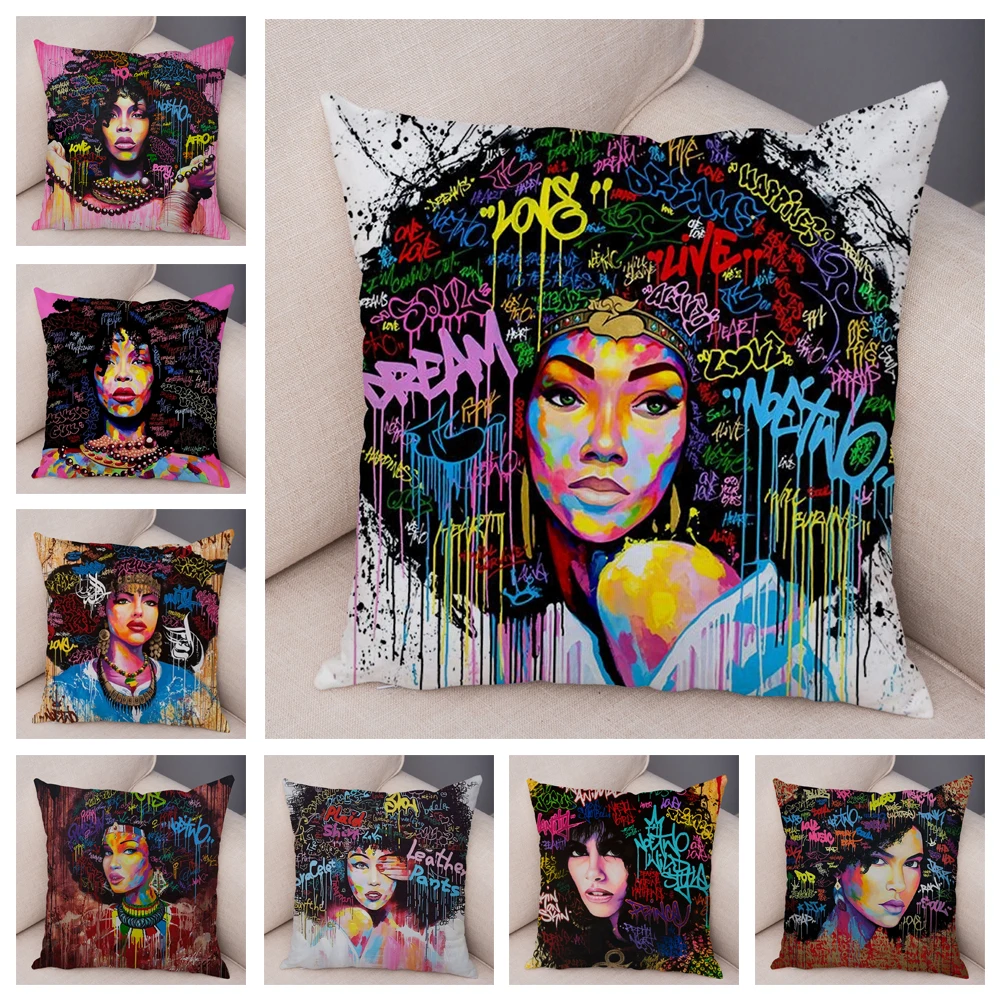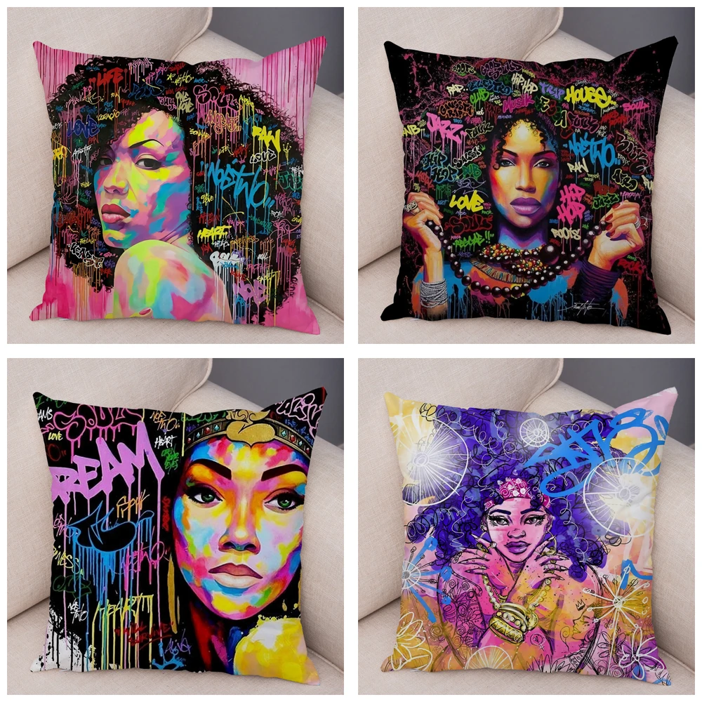 Наволочка для подушки в африканском стиле для спальни, дивана, домашний декор, красочный мультяшный наволочка для подушки Девушки мечты, плюшевый чехол для подушки 45x45 см