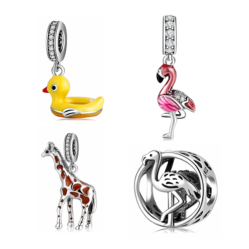 925 пробы серебро, эмаль, животное, фламинго, зоопарк тонкой драгоценные бусины, подходят к оригинальным, соответственные Европейской Пандоре обаятельные Браслеты решений