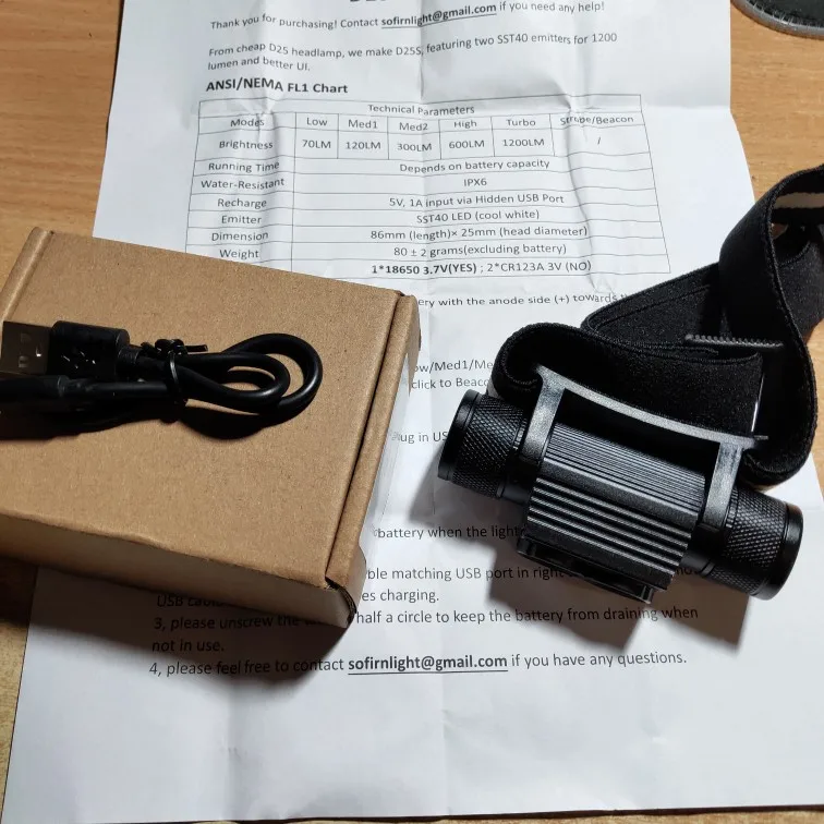Отличное время доставки, d25s отличный маленький Головной фонарь, не слишком большой и не слишком маленький. Издает фантастическое количество света для его размера. Настоятельно рекомендуется.