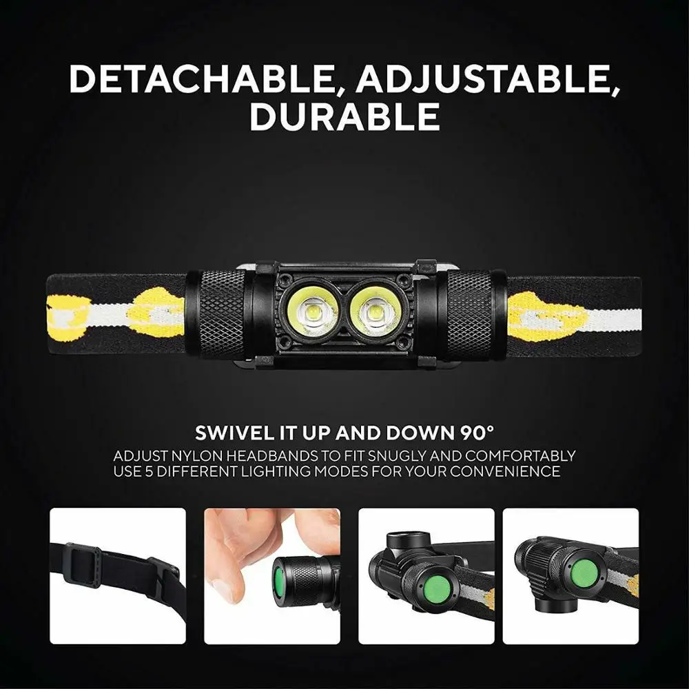 Налобный фонарь D25S 18650, двойной светодиодный фонарь Luminus SST40, лм, USB перезаряжаемая лампа