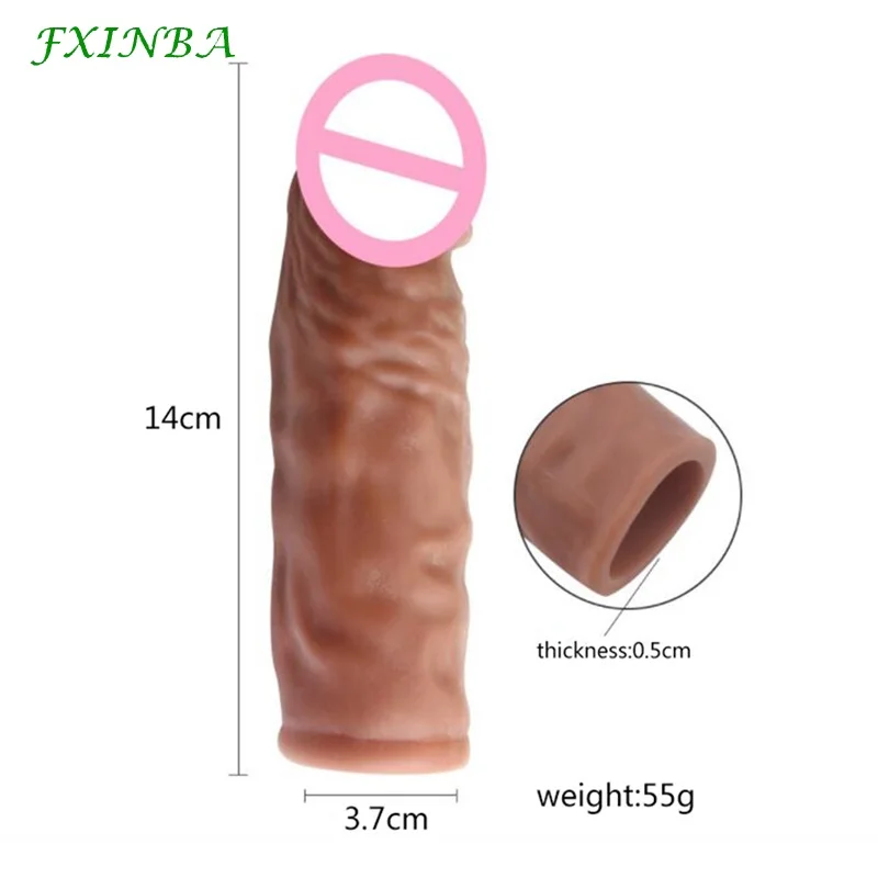 Реалистичный удлинитель для пениса FXINBA, 14 см, удлинитель для пениса, увеличивающий член, мужской многоразовый презерватив, интимный продукт, игрушка для мужчин и пар