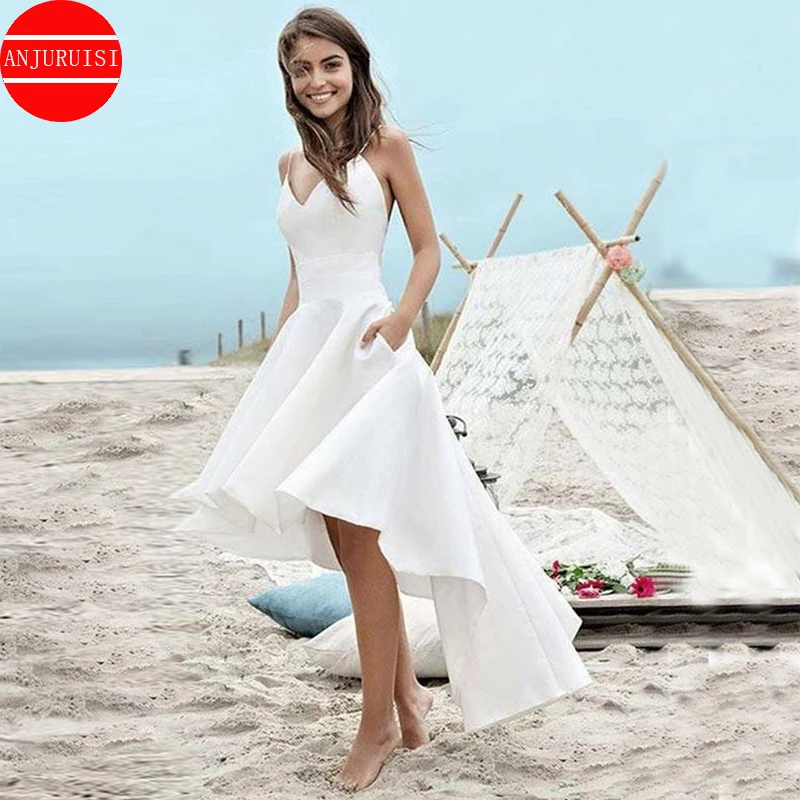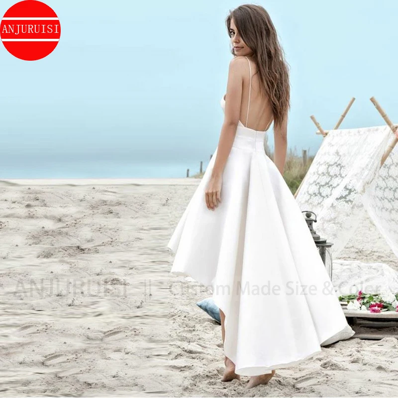 Платье Свадебное на бретелях-спагетти, пикантное атласное ТРАПЕЦИЕВИДНОЕ с V-образным вырезом, с высоким низким вырезом, с открытой спиной, без рукавов, для приема