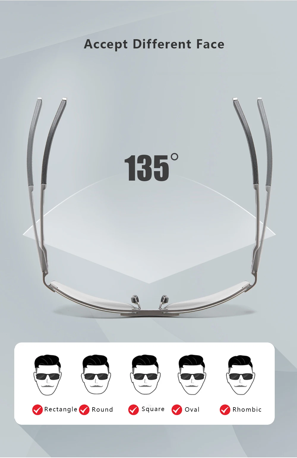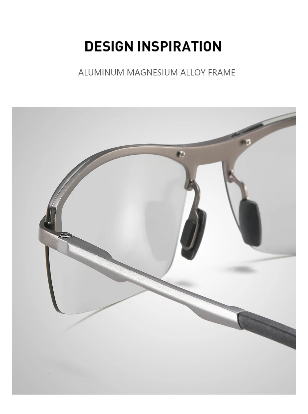 Рама из алюминиевого магниевого сплава:Алюминиевый Магниевый сплав используется в аэрокосмической промышленности.Металл Матовый, низкая плотность, хорошее сопротивление давлению и комфортное ношение.