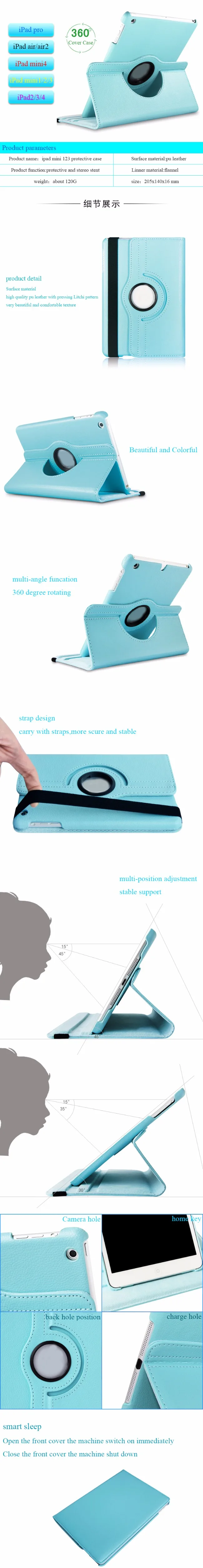 Чехол-книжка для iPad Mini 2, из искусственной кожи, с поворотом на 360 градусов